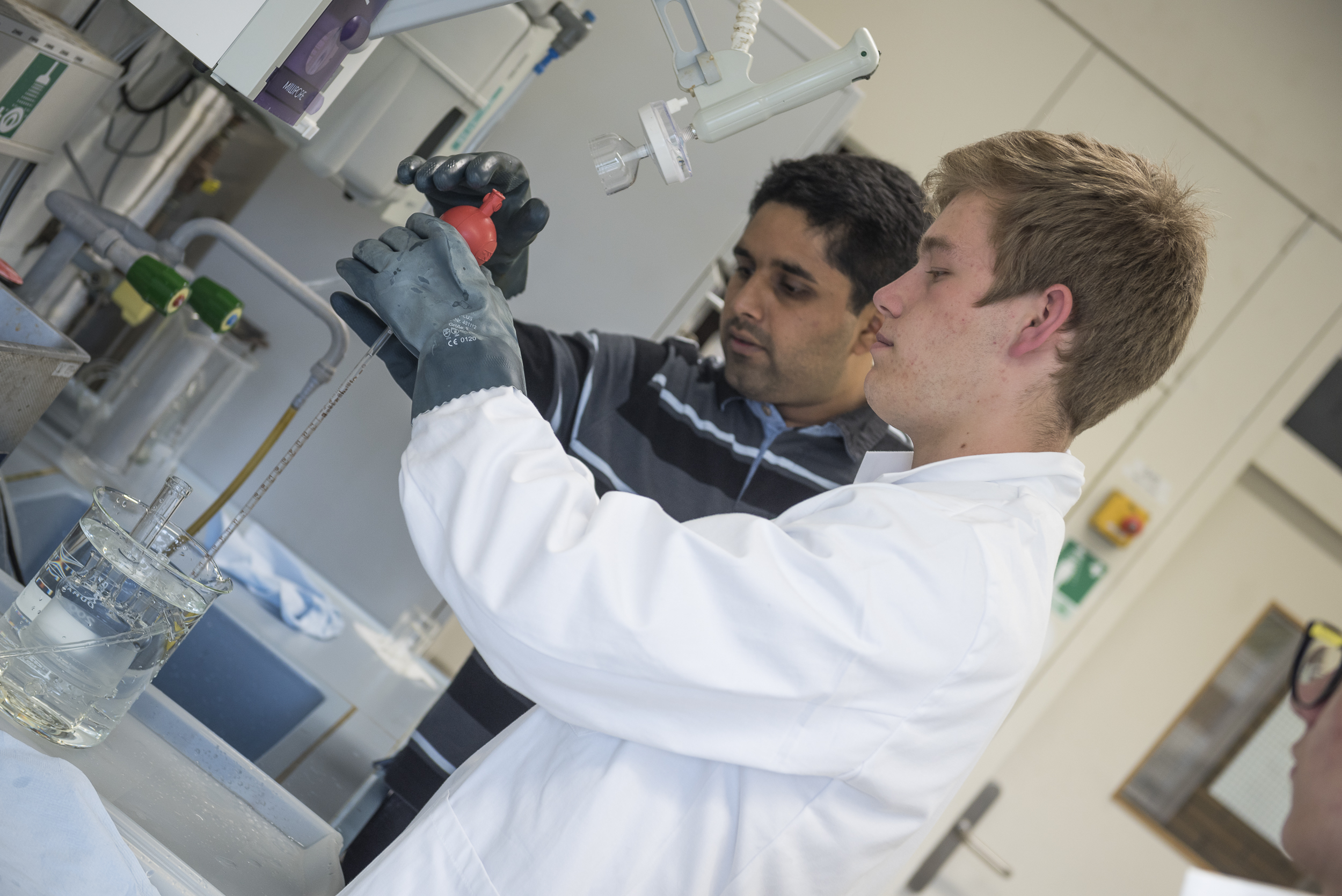 Hinrich Borchardt (18 Jahre) aus Einbeck und Clemens Schöniger (16) aus Eisenach verbrachten den ersten Praktikumstag beispielsweise an den zwei Standorten des Instituts für Energieforschung und Physikalische Technologien in Clausthal und Goslar. Dabei arbeiteten sie an der Lambdasonde und lichtinduzierten Wasserspaltungen. Ein sportlicher Abend mit Professorin Regina Semmler-Ludwig bot nach einem langen Praktikumstag Gelegenheit zum körperlichen Ausgleich.