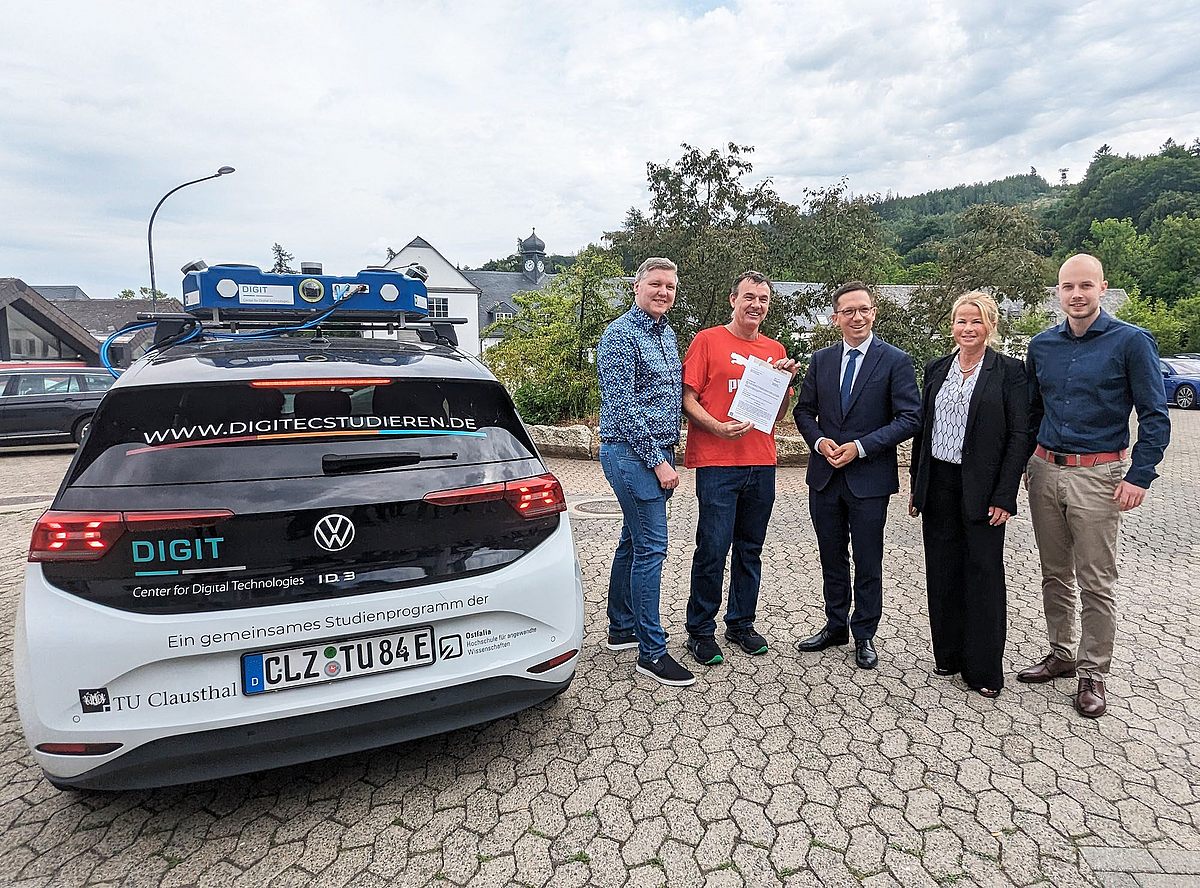 Wie gelingt es uns, in der Zukunft industrielle Prozesse mittels digitaler Technologien und Innovationen nachhaltig zu gestalten? Das ist die zentrale Frage in Lehre, Forschung und Transfer am Center for Digital Technologies (DIGIT), einem Forschungszentrum der TU Clausthal in Kooperation mit der Ostfalia Hochschule in Wolfenbüttel. Mitte Juni besuchte der Minister für Wissenschaft und Kultur, Falko Mohrs, das Forschungszentrum und überreichte den Förderbescheid der NBank für das DIGIT-Projekt „5GCampusKIShuttle“ im Auftrag seines Kollegen Wirtschaftsminister Olaf Lies.