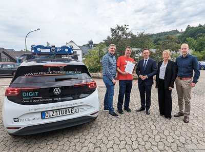 Prof. Rausch und Prof. Bikker: „Das DIGIT nimmt hinsichtlich der Forschungskooperation beider Hochschulen im Bereich Digitalisierung und Nachhaltigkeit eine zentrale Rolle ein. Wir freuen uns sehr, dass unser gemeinsamer Antrag für das Projekt ‚5GCampusKIShuttle‘ Früchte getragen hat und finanziell unterstützt wird. So können wir unsere gemeinsame Forschung im Bereich autonomes Fahren und der Kommunikation mit 5G, insbesondere im Hinblick auf die Digitalisierung des ländlichen Raums, voranbringen.“