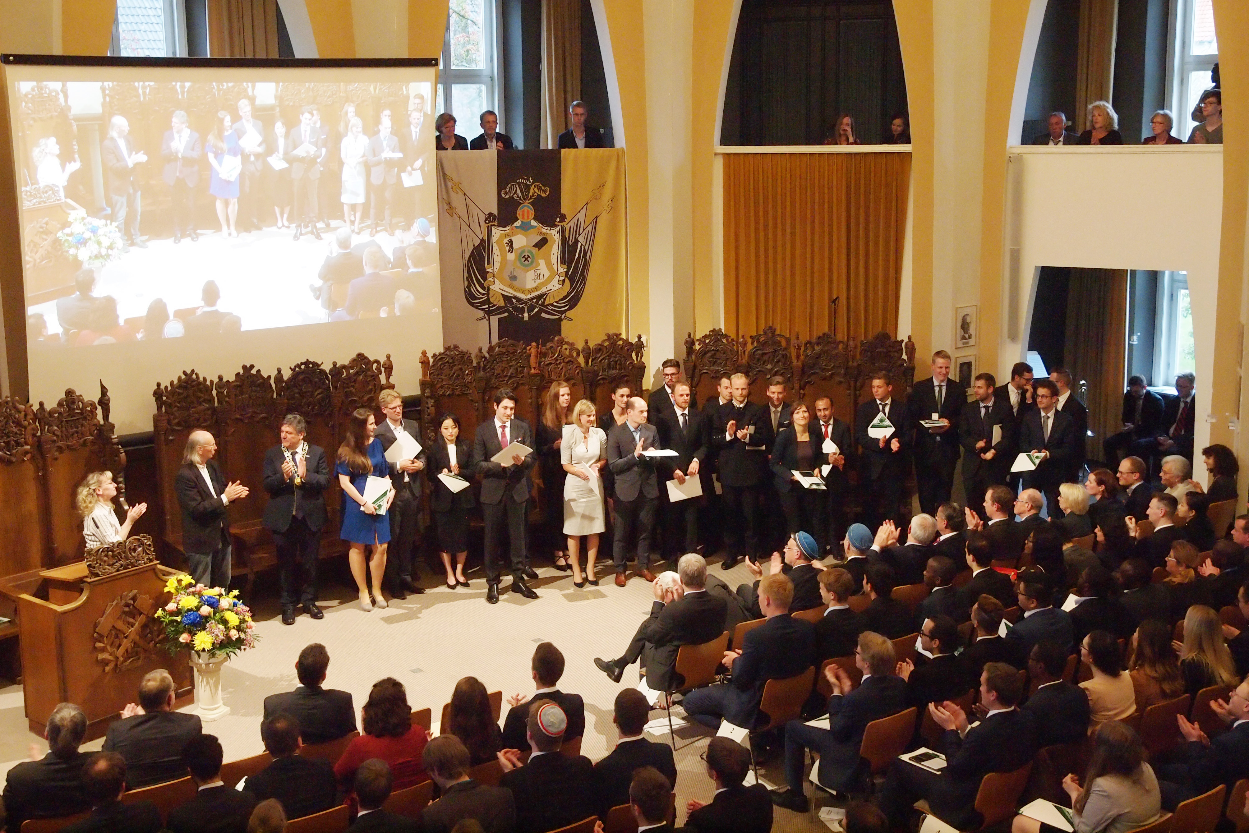 Auch der Verein von Freunden (VvF) der TU Clausthal bietet die Möglichkeit, mit der Universität in Verbindung zu bleiben. Ulrich Grethe, Mitglied der Konzerngeschäftsleitung der Salzgitter AG und Vorsitzender des Vereins, stellte den VvF vor und warb dafür, Mitglied dieses Fördervereins zu werden. Gut beim Publikum kamen auch die unterhaltsamen Worte von Frederic Vincent Posch an, der die Absolventenrede hielt.