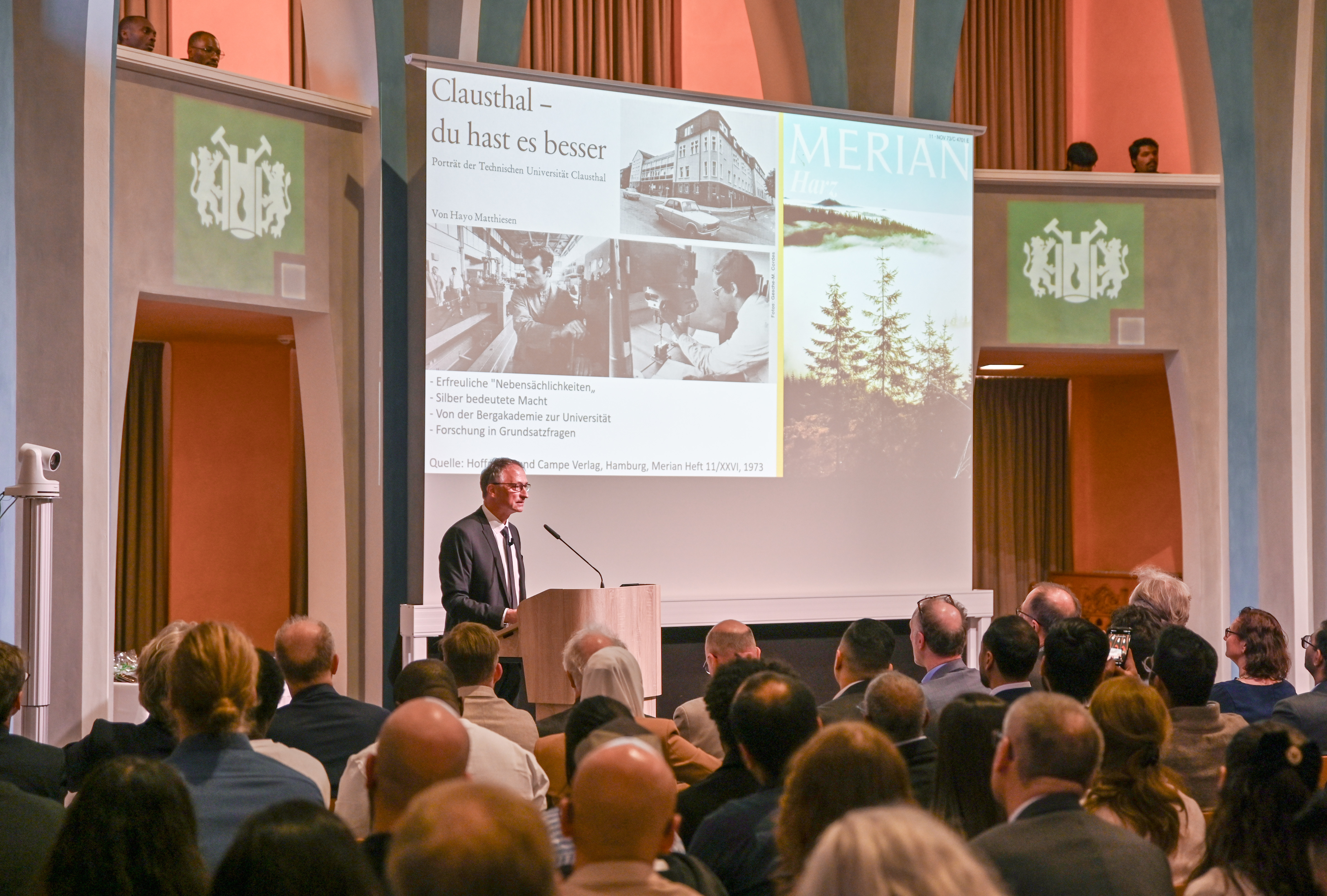 „Clausthal, du hast es besser“ – mit diesen Worten würdigte der Autor Hayo Matthiesen bereits 1973 in einem Bericht des Reisemagazins Merian Harz die besondere Atmosphäre des Universitätsstandortes. Prof. Lohrengel griff dieses Zitat auf und hob die Vorzüge eines Studiums an der TU Clausthal hervor: „Sie, liebe Absolventinnen und Absolventen, haben es besser, weil Sie an einer kleinen Universität studiert haben. Einer Universität, die sich immer wieder neu erfinden musste und an der Gemeinschaft und Internationalität gelebt werden. Sie nehmen nicht nur einen Titel mit auf den Weg, sondern auch eine einzigartige Haltung.“ Zum Abschluss wandelte Lohrengel das Zitat von 1973 ab und betonte: „Clausthal, du hast es auch durch deine Studierenden besser.“