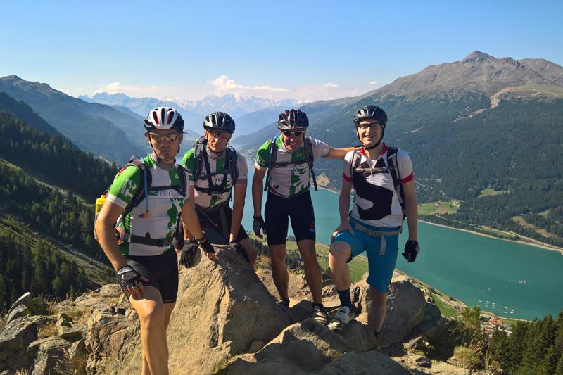 Dem Ziel folgend, eine Prüfung zu bestehen, stellte sich die Mountainbike-Gruppe der TU Clausthal der Aufgabe 370 Kilometer sowie 5800 Höhenmeter zu bewältigen. Von Garmisch aus ging es dabei über Österreich und die Schweiz nach Italien an den Gardasee. Neben den Professoren komplettierten die beiden ehemaligen Studenten Sebastian Brunotte und Matthias Ruf sowie Tourenguide Malte Haack das Quintett.