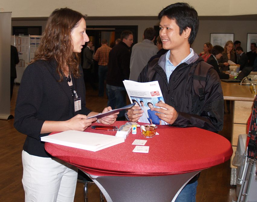 „Ich habe meinen Lebenslauf schon bei einer der Firmen abgegeben“, freute sich Lukasz Lyczkowski. Wie dem polnischen Studenten der Verfahrenstechnik ging es eigentlich fast allen jungen Besuchern: informieren, reden, Kontakte knüpfen und bestenfalls gleich eine Kurzbewerbung über den Stehtisch reichen. Kurzum, die Studierenden setzten zum Sprung ins Berufsleben an.
