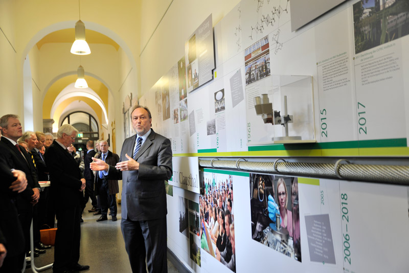Clausthal-Zellerfeld. Die TU Clausthal, hervorgegangen aus einer international anerkannten Bergakademie, identifiziert sich mit ihrer mehr als 200-jährigen Geschichte. Um dies deutlich zu machen, ist im Hauptgebäude der Universität eine öffentlichkeitswirksame Wand zur Historie gestaltet und mit 60 Gästen eingeweiht worden. Für die Darstellung ist charakteristisch, dass sie nicht im Gestrigen verharrt, sondern stets Bezug zur Aktualität nimmt.