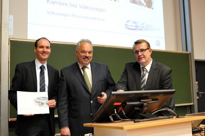 Angesichts dieser Größenordnung sei das Unternehmen immer auf der Suche nach neuen Kräften, sagte Fabian Wenzel aus dem VW-Personalmarketing. Einstiegsmöglichkeiten bestünden als Praktikant, Trainee oder Doktorand. „Wer beispielsweise ein Praktikum bei uns machen will, sollte sich drei Monate vorher bewerben“, so Wenzel. Zu finden sind die Angebote auf der Stellenbörse unter www.volkswagen-karriere.de. Einen Live-Eindruck von dem Automobilproduzenten können sich die Clausthaler Studierenden innerhalb einer Exkursion am 14. Juli verschaffen. An diesem Tag besichtigen sie als Höhepunkt der Vorlesung die Fertigung und den Karosseriebau am Standort Wolfsburg.