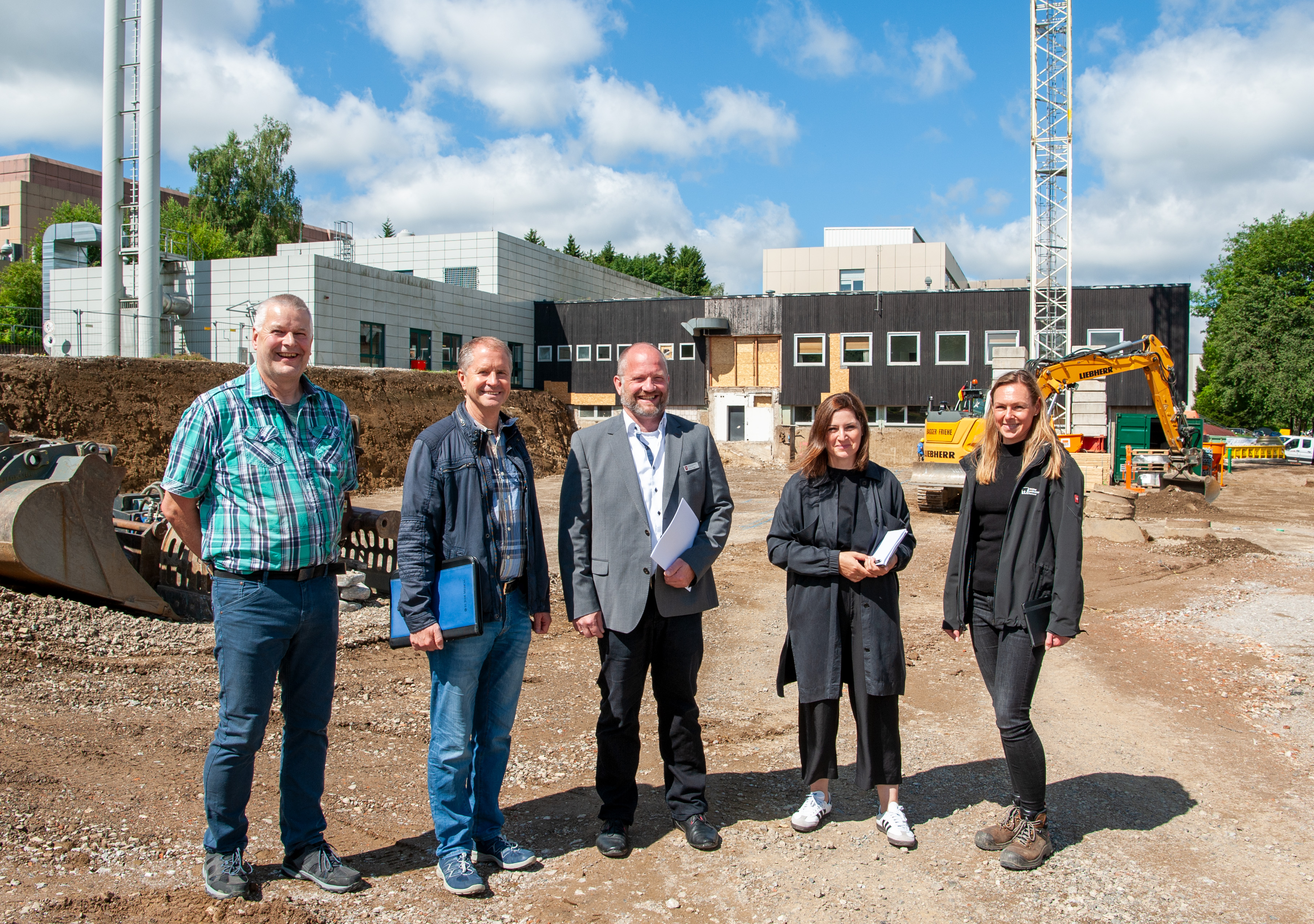 Das Projektteam freut sich über den Start der Hochbauarbeiten für den Chemie Campus Clausthal: (von links) Thomas Heger und Joachim Mertens (beide Technische Verwaltung der TU Clausthal), Marcus Rogge (Leitung Staatliches Baumanagement Südniedersachsen), Anne Günther (Projektleitung Staatliches Baumanagement Südniedersachsen) und Julia Jüttner (Stricker Architekten Hannover). Foto: Sofia Dell'Aquila