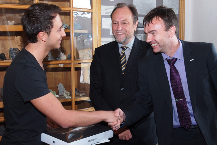 Parallel zur „Social Media“-Kommunikation funktioniert aber nach wie vor die Mund-zu-Mund-Propaganda. „Ich habe von dem Wettbewerb von meiner Mutter erfahren“, sagte die Clausthal-Zellerfelderin Franziska Sand. Zusammen mit Klassenkamerad Lukas Bauer drehte sie daraufhin den Kurzfilm „NaTUr Clausthal“, der auch durch eine prägnante Sprache gefiel: „Es liegt in Deiner Hand. Deine Entscheidung. Dein Leben. Deine Uni. TU Clausthal.“ Mit diesem Beitrag landeten die zwei Zehntklässler auf Platz drei und bekamen einen „iPod“ sowie Fleecejacken der Uni. Auf Rang zwei kamen Konstantin Zapolski und Daniel Hartschenko, ebenfalls von der ortsansässigen Robert-Koch-Schule, mit dem Spot „From Zero To Student“. Aufgrund von Krankheit konnte das Duo, das ein „iPad“ gewann, nicht an der Preisverleihung teilnehmen.