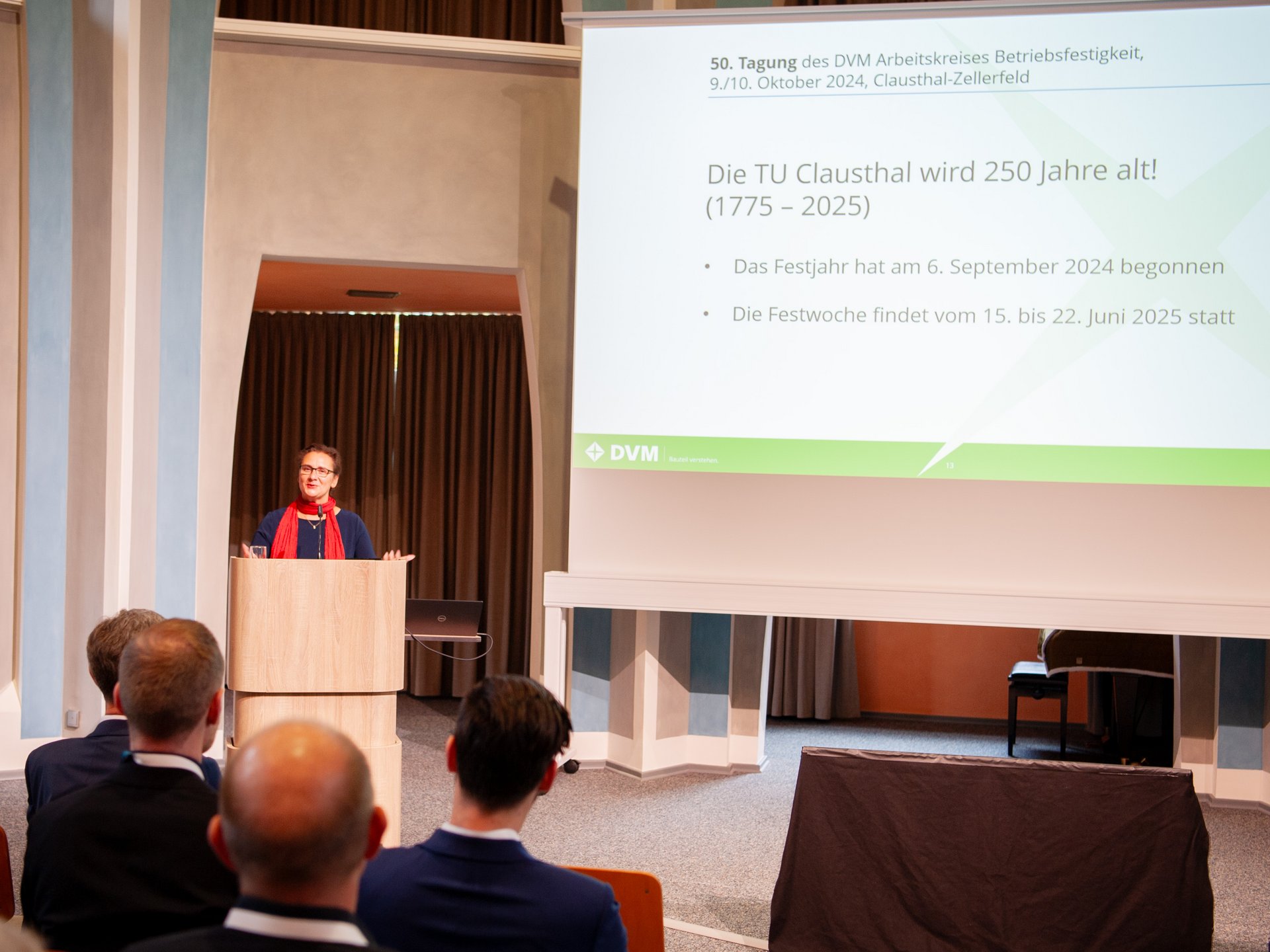 Universitätspräsidentin Dr.-Ing. Sylvia Schattauer begrüßte die Tagungsgäste im Namen der TU Clausthal. Zum anstehenden 250. Jubiläum der Universität und insbesondere der Festwoche im Juni 2025 lud sie alle Anwesenden ein. „Die TU Clausthal ist sich ihrer Tradition bewusst, blickt aber auch in die Zukunft – Innovationen voranzubringen liegt in unserer DNA“, versicherte Frau Schattauer.