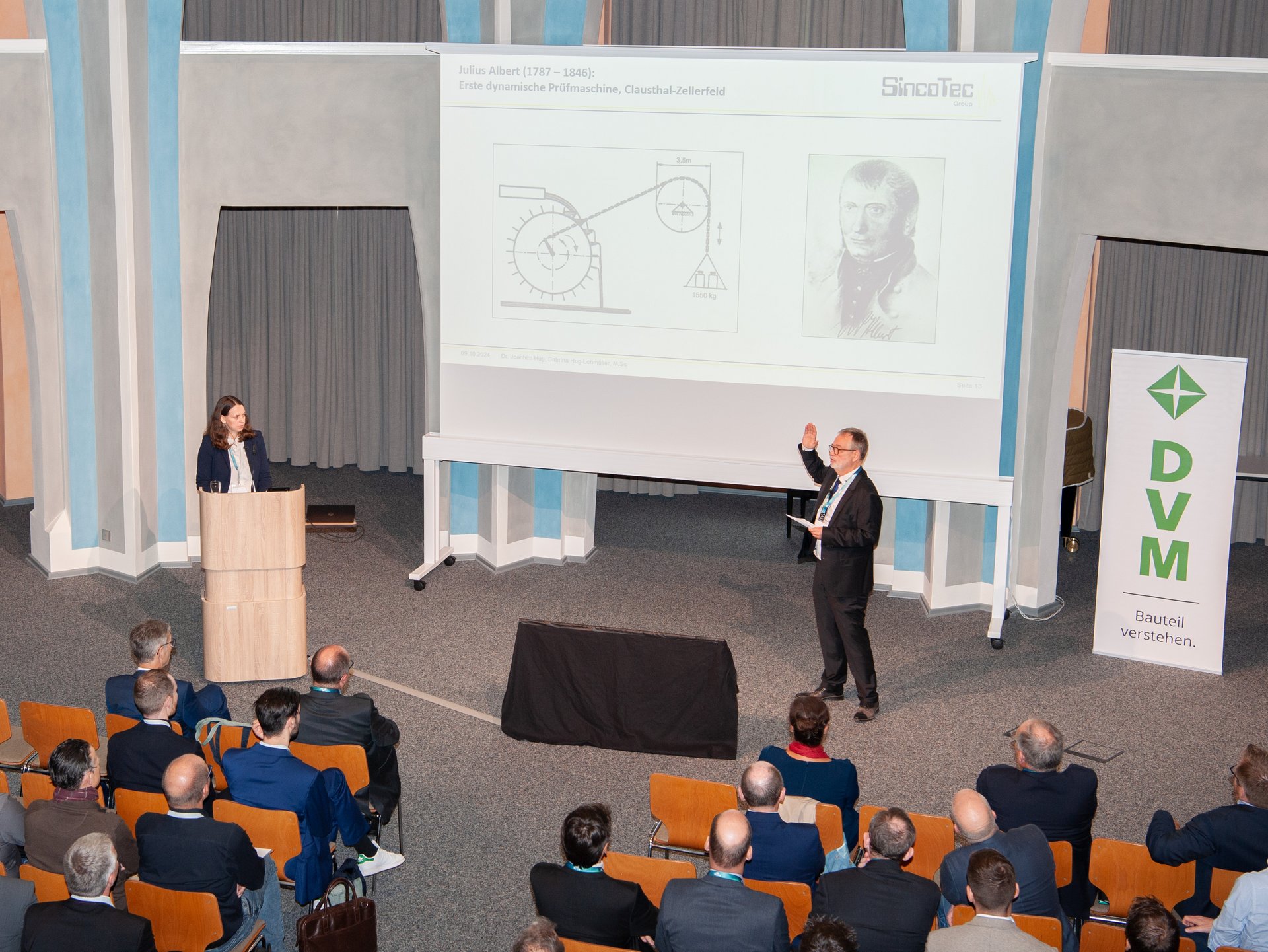 Dr.-Ing. Martin Brune, Alumnus der TU-Clausthal, war erfreut darüber, dass die 50. Jahrestagung des DVM in Clausthal-Zellerfeld abgehalten wurde. Universitätspräsidentin Dr.-Ing. Sylvia Schattauer hieß alle Teilnehmenden beim Auftakt im Kuppelsaal herzlich willkommen. Dr.-Ing. Joachim Hug und Sabrina Hug-Lohmüller von der SincoTec-Group übernahmen die Einführung in das Ober-Thema "Betriebsfestigkeit" (siehe Bilder unten). Fotos: Vanessa Jakubus
