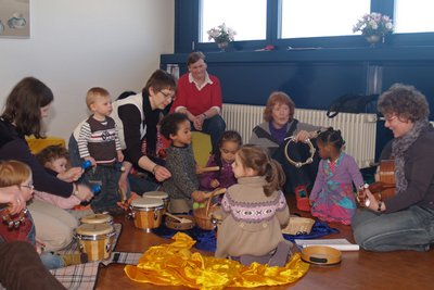 Silben lernen durch das bekannte Kinderlied „Backe, backe Kuchen“ oder der Einsatz von Rasseln und Trommeln, um das Märchen vom Froschkönig lebendig zu gestalten - das Programm war sehr vielschichtig und auf die Fähigkeiten der Kinder bis einschließlich sechs Jahre abgestimmt. Auch die Eltern wurden aktiv einbezogen und nahmen Tipps für zuhause mit. „Einfach mit Löffeln auf einem Kochtopf trommeln“ und „im Singen neue Wörter lernen“, rät Alexandra Spieker von der Musikschule „Notenwirbel“ in Goslar. Sie führte die Kinder und ihre Eltern spielerisch durch den Nachmittag und motivierte dazu, eigene Ideen für den Alltag zu entwickeln.