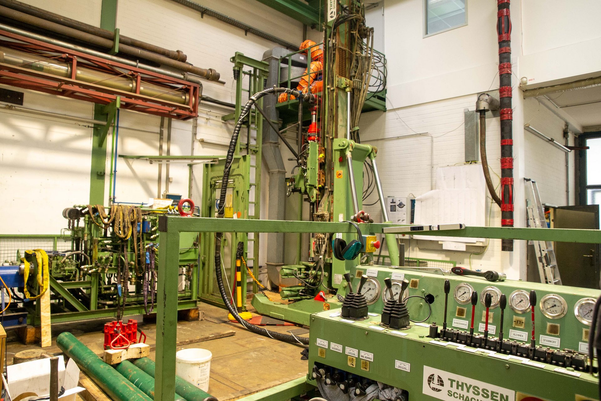 Die Energie zum Betreiben des Bohrhammers wird direkt aus der kinetischen Energie der Bohrspülung gewonnen. Die ersten Versuche der Forscherinnen und Forscher vom ITE fanden am Drilling Simulator Celle (DSC) im Hardware-Simulator statt. Dort wurde mit einem Prototyp zunächst horizontal in eine Gesteinskammer gebohrt. Danach fanden drei Wochen lang Experimente mit dem entwickelten Bohrwerkzeug im 30 Meter tiefen Versuchsschacht am ITE statt. Mithilfe dieser Versuche, konnte bisher vor allem nachgewiesen werden, dass der Bohrhammer einen hohen Bohrfortschritt im Hartgestein erreicht, mit herkömmlicher Bohrspülung betrieben werden kann und mit MWD-Systemen im Bohrstrang kompatibel eingesetzt werden kann.