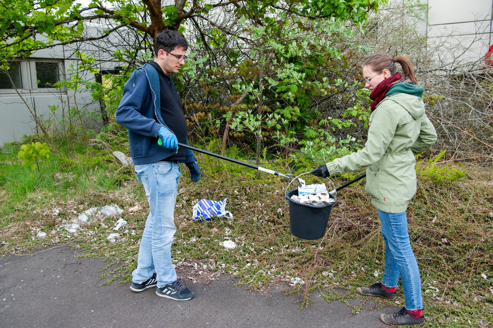 Ausgerüstet mit Handschuhen, Greifzangen und Müllsäcken haben rund 50 Freiwillige den Campus von Müll befreit. Die Aktion lief unter dem Motto „Ein sauberer Campus für unsere 250-Jahr-Feier“.