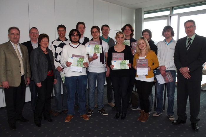 Für die drei angehenden Wirtschaftsingenieure und zwei BWL-Studenten zahlt sich der Erfolg, der in den Räumen der Sparkasse Goslar/Harz in Clausthal-Zellerfeld zustande kam, gleich in mehrfacher Hinsicht aus. Zum einen überreichte Uwe Bauerochs, Regionaldirektor des gastgebenden Kreditinstituts, der Gruppe 300 Euro als Siegprämie. Zum anderen qualifizierte sich das Team für die nächste Runde des Wettbewerbs am 26. und 27. Mai in Emden. Und schließlich wird die Veranstaltung innerhalb des Studiums im Bereich Sozialkompetenz angerechnet.