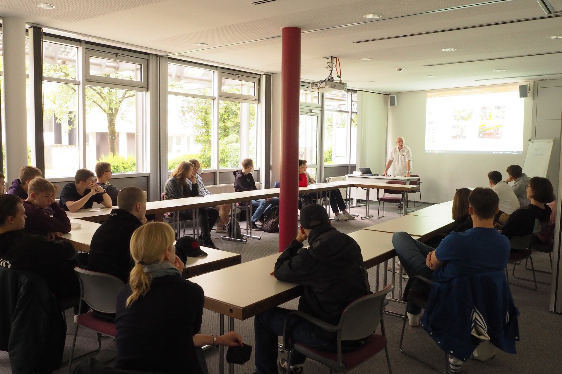 Die 17 Schüler:innen des technischen Schulzweiges nutzten die Gelegenheit, um sich über die Studienmöglichkeiten an der TU zu informieren. Organisiert von der Kontaktstelle Schule & Universität besuchten sie das Clausthaler Umwelttechnik Forschungszentrum (CUTEC). Dort hielt Axel Fischer, Leiter der Abteilung Umwelt- und Prozessanalytik, ein „Schnupperseminar“ ab. Neben Informationen zu Universität und Forschungsfeldern gab es Raum für Diskussionen, z.B. zur E-Mobilität. „Das ist ein aktuelles Thema, das unsere Schüler bewegt“, erzählt Lehrerin Nicole Meyer-Wolf.