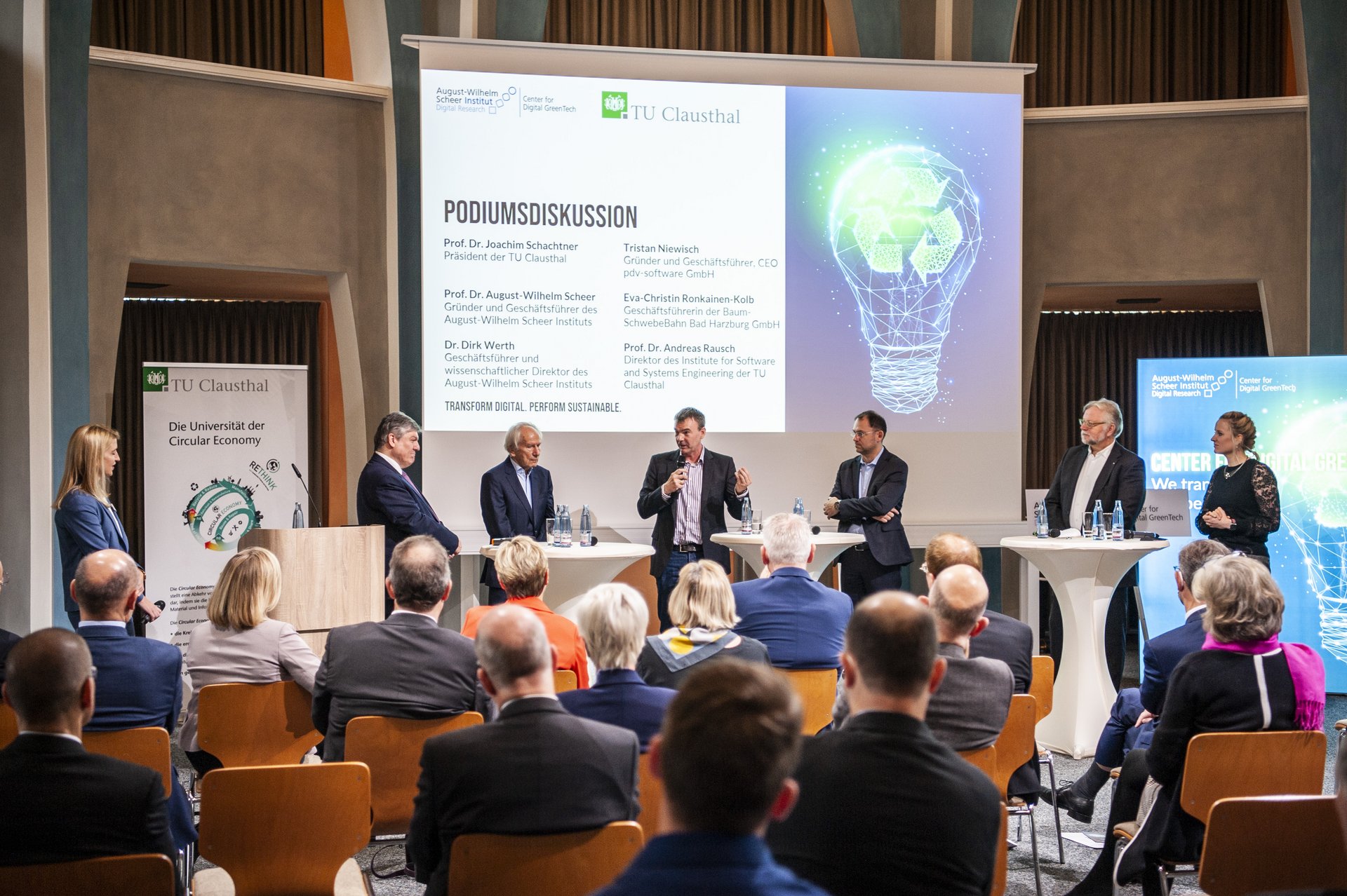 Die TU Clausthal hat sich zum Ziel gesetzt, im Jahr 2025 weltweit für interdisziplinäre Forschung und Lehre sowie für fachübergreifenden Transfer im Feld der Circular Economy zu stehen. Professor Joachim Schachtner, Präsident der Technischen Universität Clausthal, unterstreicht die Dimension des Leitthemas: „Im wissenschaftlichen Profil unserer Universität umfasst die Circular Economy neben der klassischen Kreislaufwirtschaft (Circular Materials) die erneuerbaren Energien (Circular Energy) und – ganz wichtig – die digitale Steuerung des Gesamtsystems (Digital Transformation of Circular Economy). Gemeinsam mit dem August-Wilhelm Scheer Institut werden wir die Circular Economy durch Forschungsprojekte auf dem Gebiet der digitalen Transformation und durch ein innovatives Reallabor sichtbar nach vorne bringen. Wir wollen damit in Zeiten des Klimawandels zu einem Umdenken in Wirtschaft, Politik und Bevölkerung beitragen und helfen, eine nachhaltige Gesellschaft von morgen zu entwickeln.“