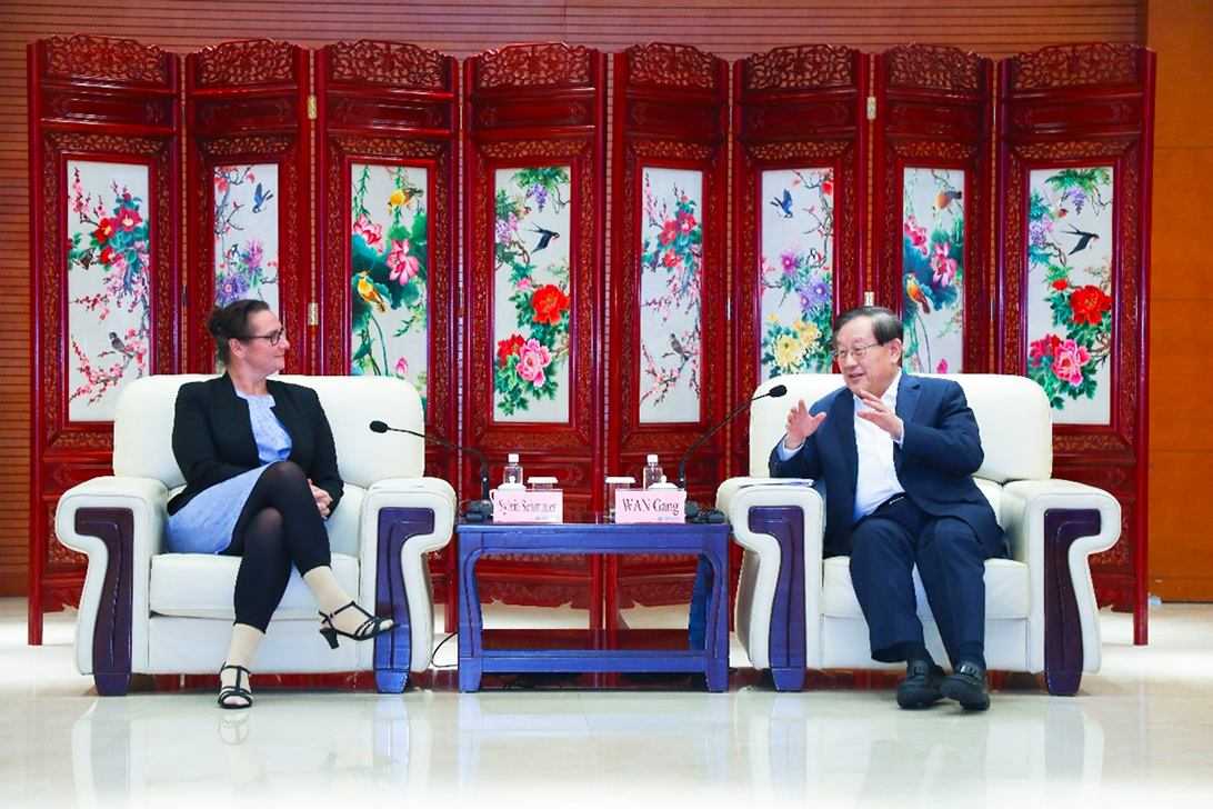 In der chinesischen Hauptstadt traf die Delegation den Clausthaler Alumnus Prof. Wan Gang. Er promovierte 1991 an der TU Clausthal und wurde später Forschungsminister in der Volksrepublik. Heute ist er Präsident der Chinesischen Vereinigung für Wissenschaft und Technologie. Im Gespräch diskutierten die Teilnehmenden den Ausbau der deutsch-chinesischen Zusammenarbeit, insbesondere im Bereich Kreislaufwirtschaft und Elektrofahrzeuge. Hierzu stellte Frau Schattauer die Forschungsausrichtung der TU Clausthal auf die ressourceneffiziente Kreislaufwirtschaft vor. Als weltweit erste Universität der Circular Economy hat sich die TU Clausthal in Forschung, Lehre und Transfer auf die Förderung einer nachhaltigen Entwicklung fokussiert.