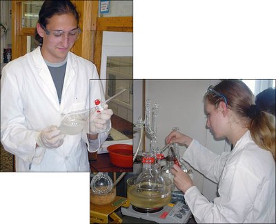Dem Geheimnis des Cholesterins auf der Spur - das war der Schwerpunkt des Themas „Die Chemie natürlicher Materialien“. Um den Aufbau dieses lebenswichtigen Naturstoffs kennen zu lernen, machten sich die Schülerinnen und Schüler unter anderem mit der spektroskopischen Methode der chemischen Strukturaufklärung vertraut. Gleichzeitig hangelten sie sich in Datenbankrecherchen durch den Dschungel der Fachliteratur - ein unerlässlicher Baustein wissenschaftlicher Arbeit. Schließlich konnten die Nachwuchswissenschaftler mit dem Wissen um die chemische Struktur des Cholesterins diesen Stoff im Labor isolieren und seine Eigenschaften untersuchen. Beeindruckt von der Oberharzer Wissenschaft zeigten sich die begleitenden Lehrer: „Die Einblicke in ein modernes Institut und die wissenschaftlichen Möglichkeiten, ein Produkt vom Experiment bis zur Strukturaufklärung verfolgen zu können, sind schon sehr bemerkenswert“, sagte Andreas Müller, Chemielehrer aus Bad Berka. Zusammen mit drei Kolleginnen und Kollegen und mit Assistenten vom IOC betreute er die Schüler bei ihrer Wissenschaftswoche.