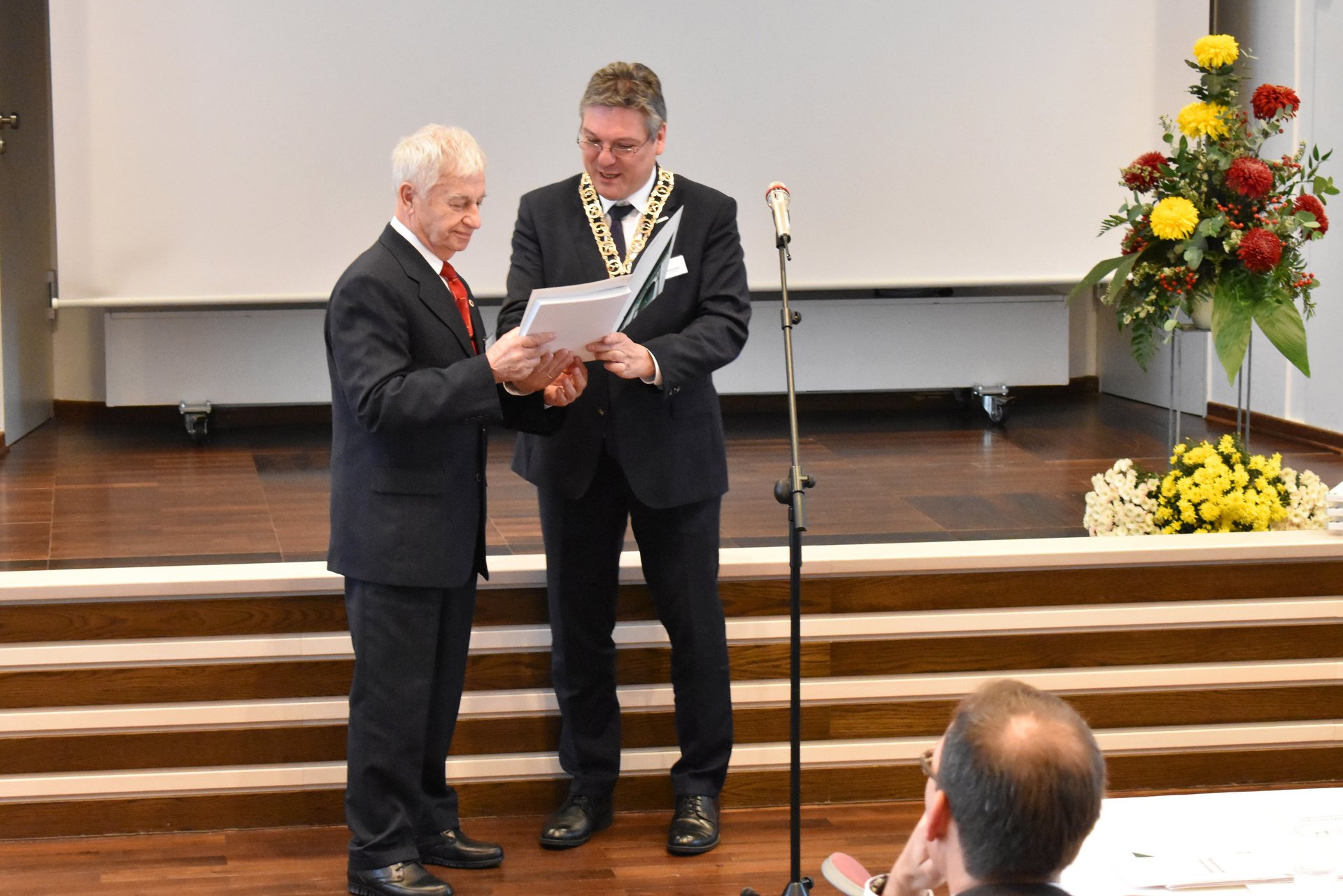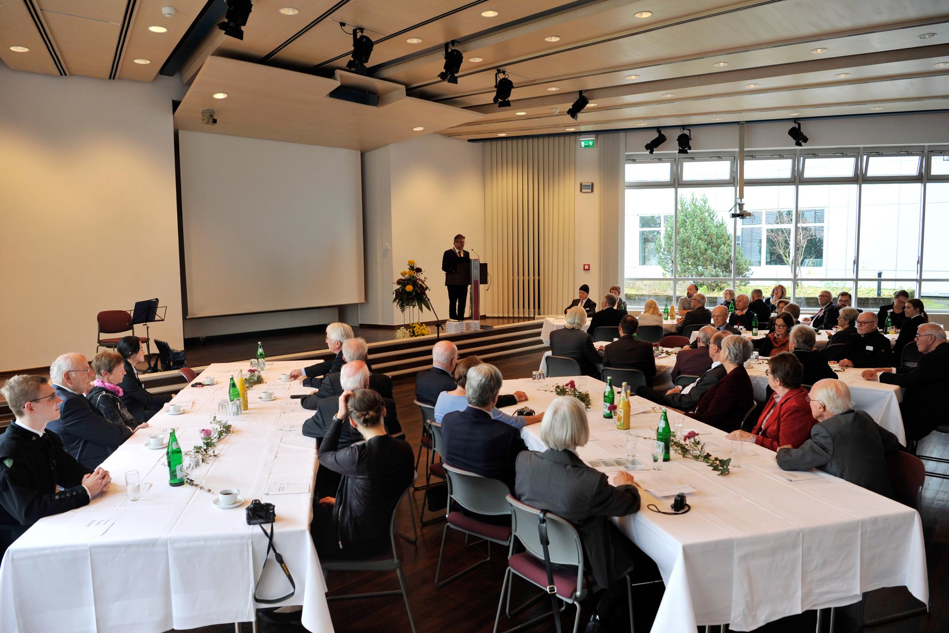 Seitens des Vereins von Freunden der TU hielt Dr. Stephan Röthele ein Grußwort. „Clausthal ist ein Ort, wo etwas in Ruhe reifen kann“, sagte er und nannte die Werte, die die Berg- und Universitätsstadt seit Langem prägen: Klugheit, Gerechtigkeit, Mut und Maß. Die heutige Situation im Oberharz lasse sich überdies durch einen Dreiklang mit T-Worten beschreiben: TU, Tourismus und Technologie im Grünen.