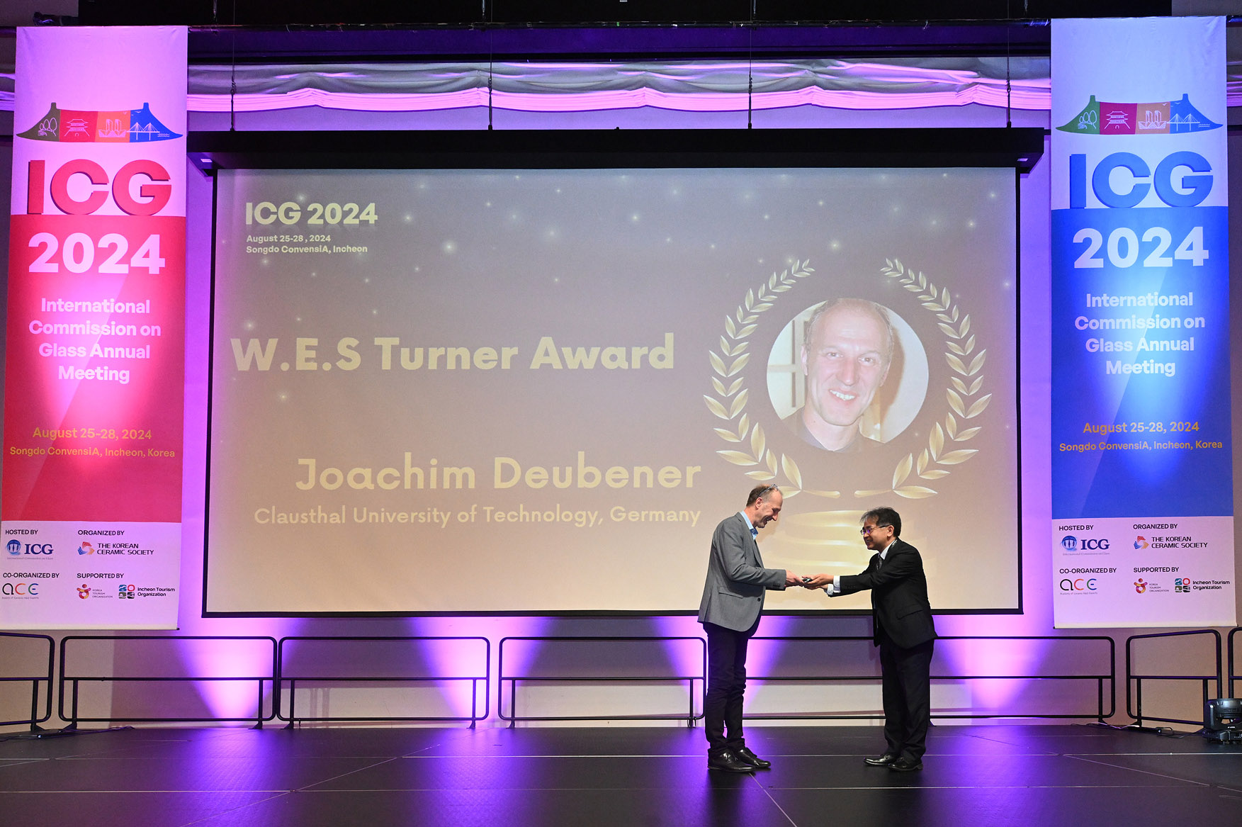 Prof. Joachim Deubener hat auf der Jahrestagung „International Commission on Glass 2024“, die im südkoreanischen Incheon stattfand, den W.E.S. Turner Award überreicht bekommen.