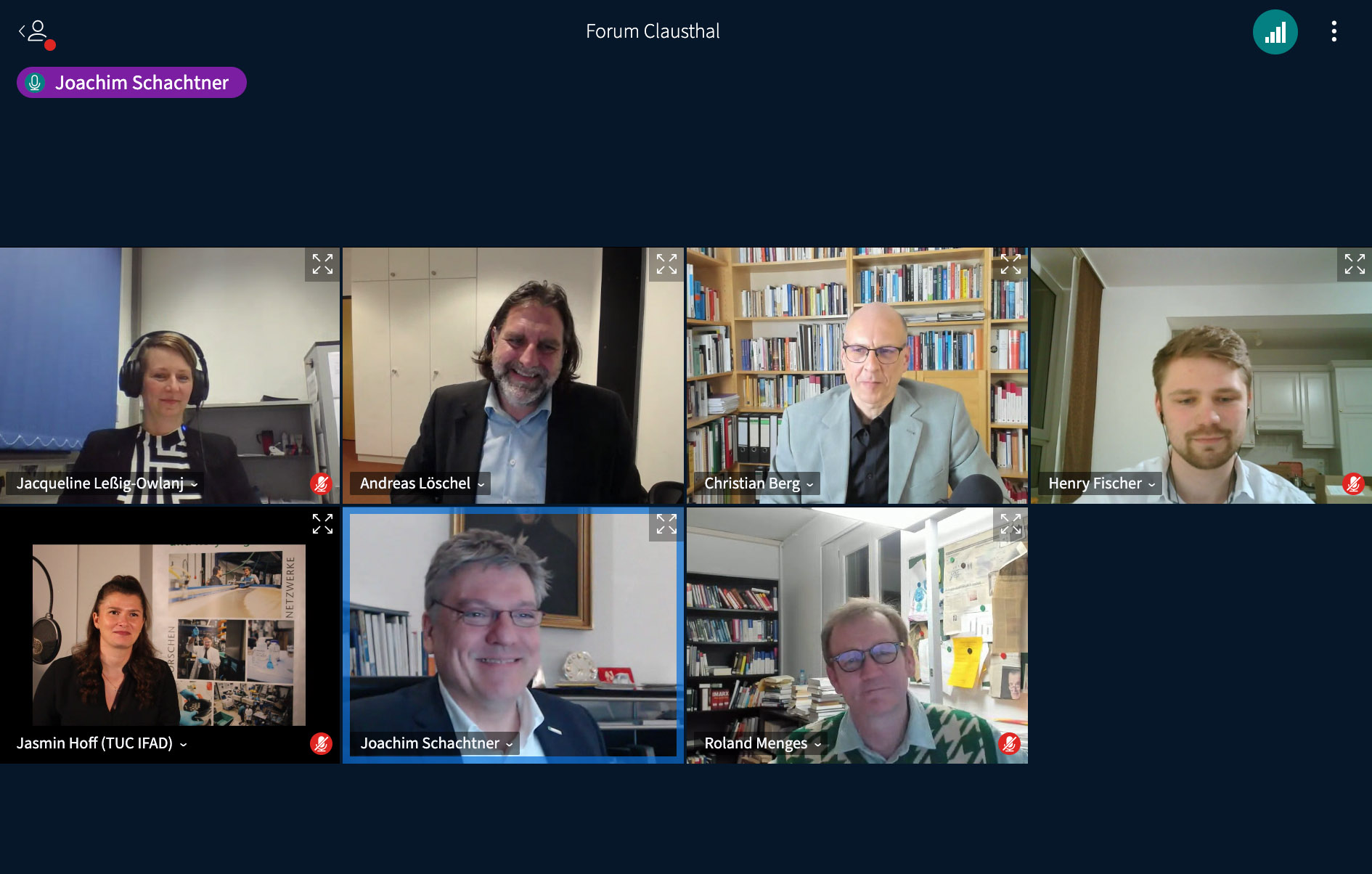 Am Schluss der annähernd zweistündigen, vierten Veranstaltung der Reihe „Forum Clausthal“ ging Prof. Schachtner in einem kleinen Fazit noch einmal kurz auf Schlüsselbegriffe wie etwa Multiperspektivität, „inconvenient truth“ und flexible Technologiepfade ein. Dr. Jacqueline Leßig-Owlanj aus dem Organisationsteam stellte auch angesichts der Resonanz fest: „Die Veranstaltungsreihe hat mehr und mehr Fahrt aufgenommen und das ganz bewusst gewählte digitale Format bewährt sich.“