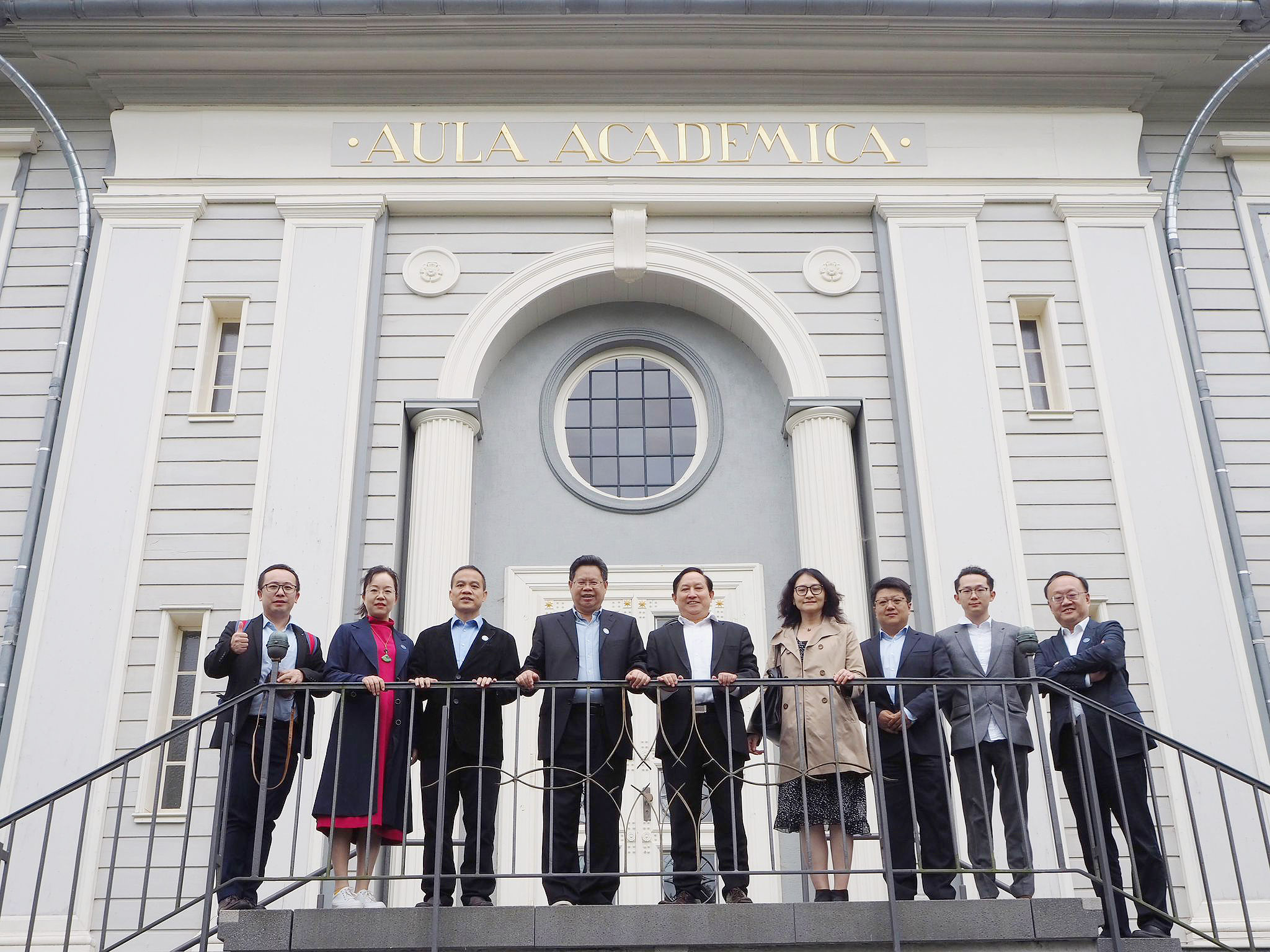 Im Anschluss daran kam die Delegation für eine offizielle Begrüßung und ein erstes Gespräch zu möglichen Kooperationen im Präsidium mit dem Vizepräsidenten für Studium und Lehre, Prof. Christian Bohn, sowie dem Studiengangverantwortlichen für Informatik, Prof. Sven Hartmann, zusammen.