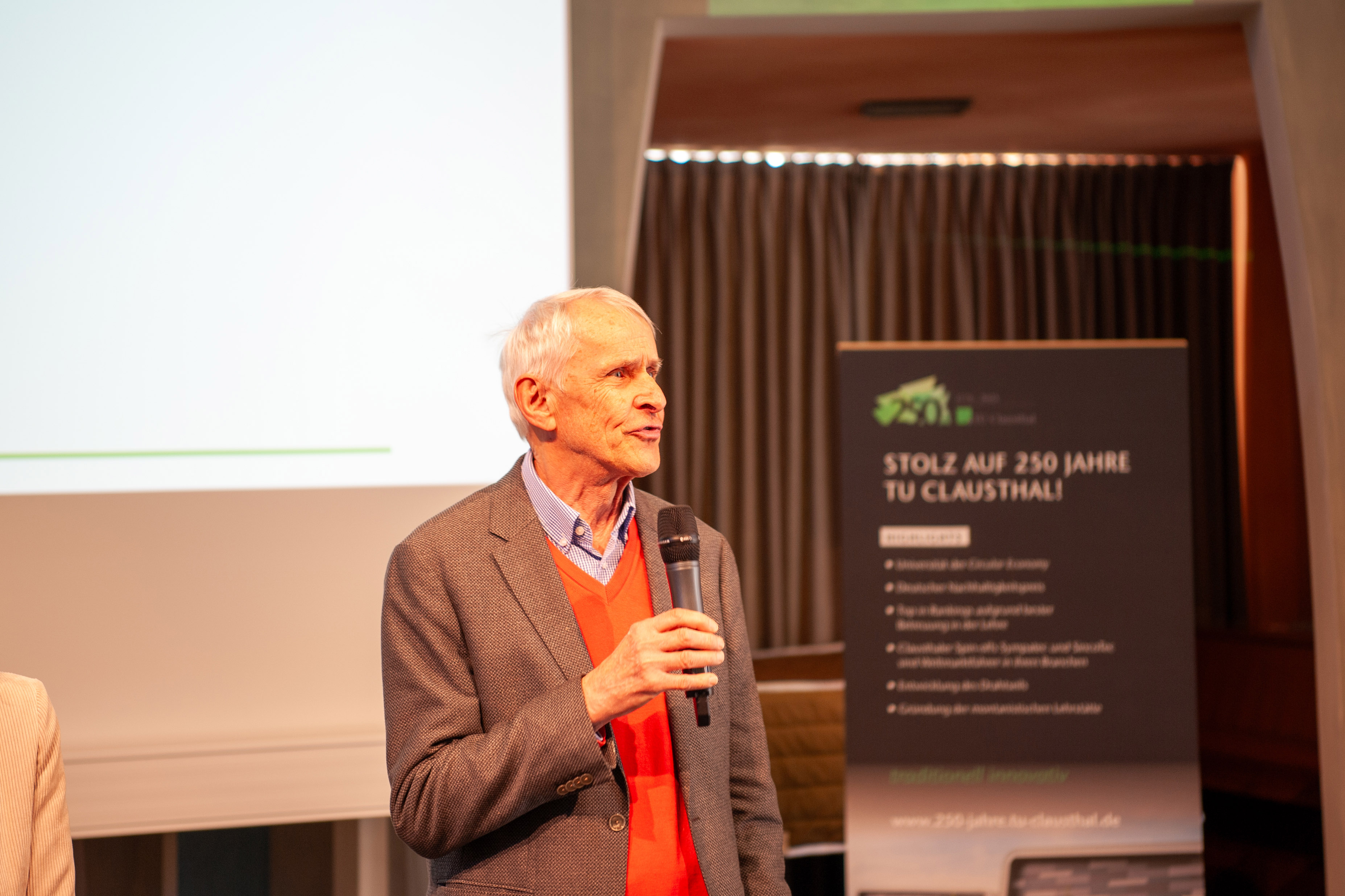 Im folgenden Vortrag „Die Welt unter unseren Füßen“ schlug Prof. Jens-André Paffenholz (Institute of Geotechnology and Mineral Resources) den Bogen von der Herkunft der TU Clausthal, dem Bergbau, zu aktueller, nachhaltiger Forschung. Er stellte einen innovativen Laserscanner vor, mit dessen Hilfe historische Bergbaustrukturen vermessen und die Daten dann in ein virtuelles Modell digitalisiert werden.