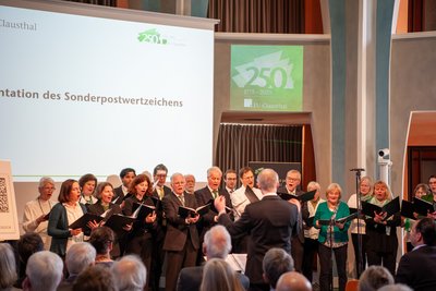 Bevor sich die Gäste beim Get-Together über die neue Sonderbriefmarke austauschten, stimmte der Kammerchor der Universität das Steigerlied an.