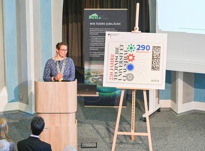 „Die Sonderbriefmarke ist nicht nur ein Stück Papier, sondern eine wertvolle Botschafterin unseres Jubiläumsjahres. Sie symbolisiert die Relevanz der TU Clausthal über geografische und zeitliche Grenzen hinweg und ehrt zugleich ihre Geschichte und ihre Leistungen“, betonte Dr.-Ing. Sylvia Schattauer, die Präsidentin der Hochschule. Das Motiv des Postwertzeichens verströme Energie, Modernität und Kreativität. „Und es symbolisiert ganzheitliches Denken in Kreisläufen. Am 250. Geburtstag der TU Clausthal würdigt es unsere Vergangenheit, indem es gerade auch den Fokus auf Gegenwart und Zukunft unserer Universität der Circular Economy richtet“, so die Präsidentin bei ihrer Begrüßung.