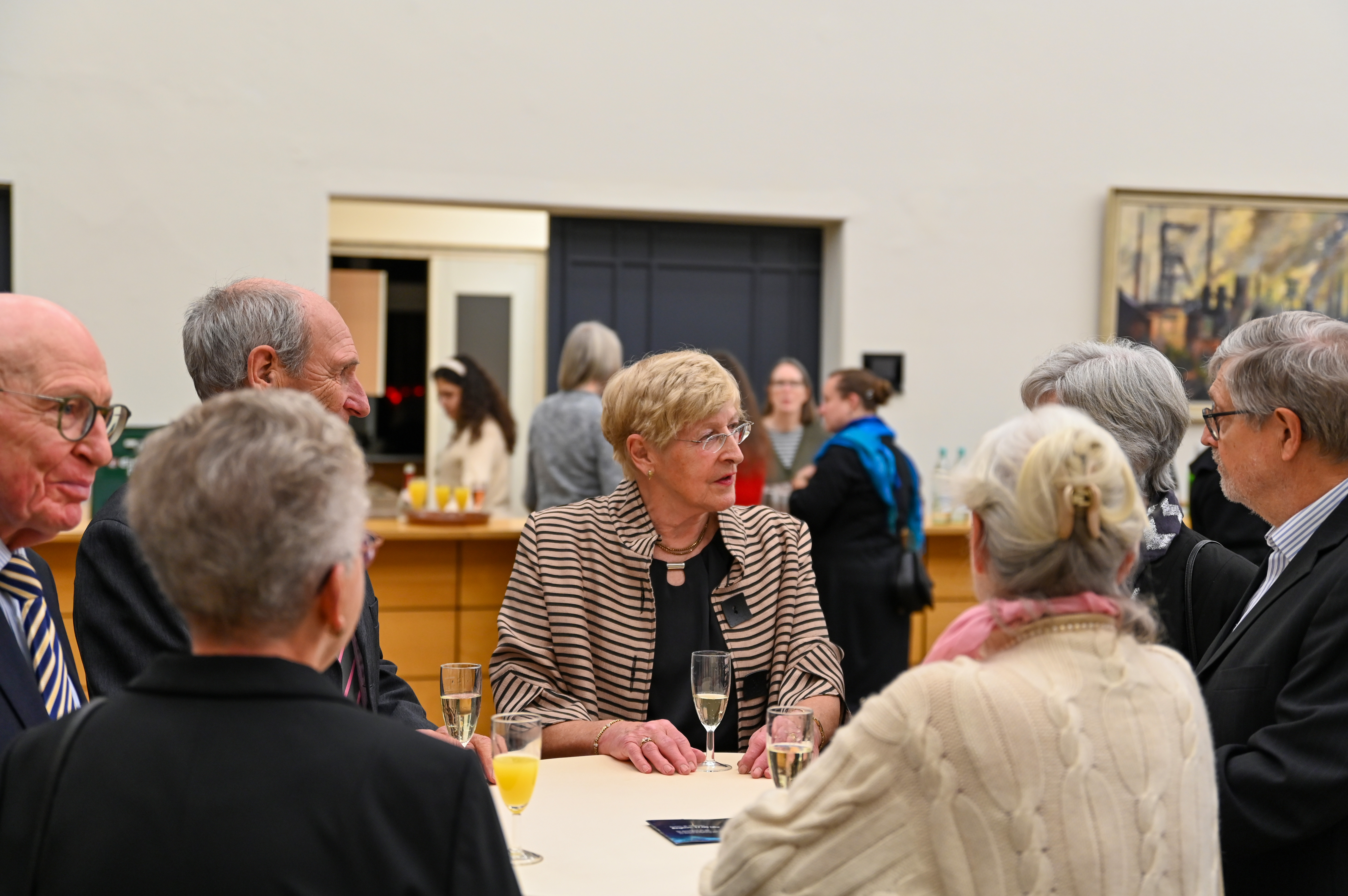 Für ihr langjähriges Engagement im Hochschulrat wurde Dr. Marina Frost (links) im feierlichen Rahmen von Universitätspräsidentin Dr.-Ing. Sylvia Schattauer zur Ehrenbürgerin der TU Clausthal ernannt. Beim anschließenden Get-Together klang der Abend in der Aula Academica in geselliger Atmosphäre aus. Fotos: Vanessa Jakubus
