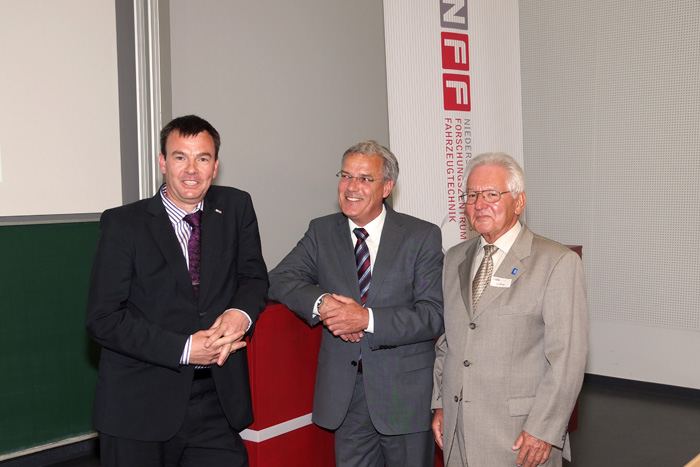 Die Veranstaltung fand vor rund 100 Professoren, Ingenieuren und Studierenden im Rahmen der Reihe „Kluge Köpfe denken heute schon an übermorgen“ statt. Organisiert wird sie vom Niedersächsischen Forschungszentrum für Fahrzeugtechnik (NFF).