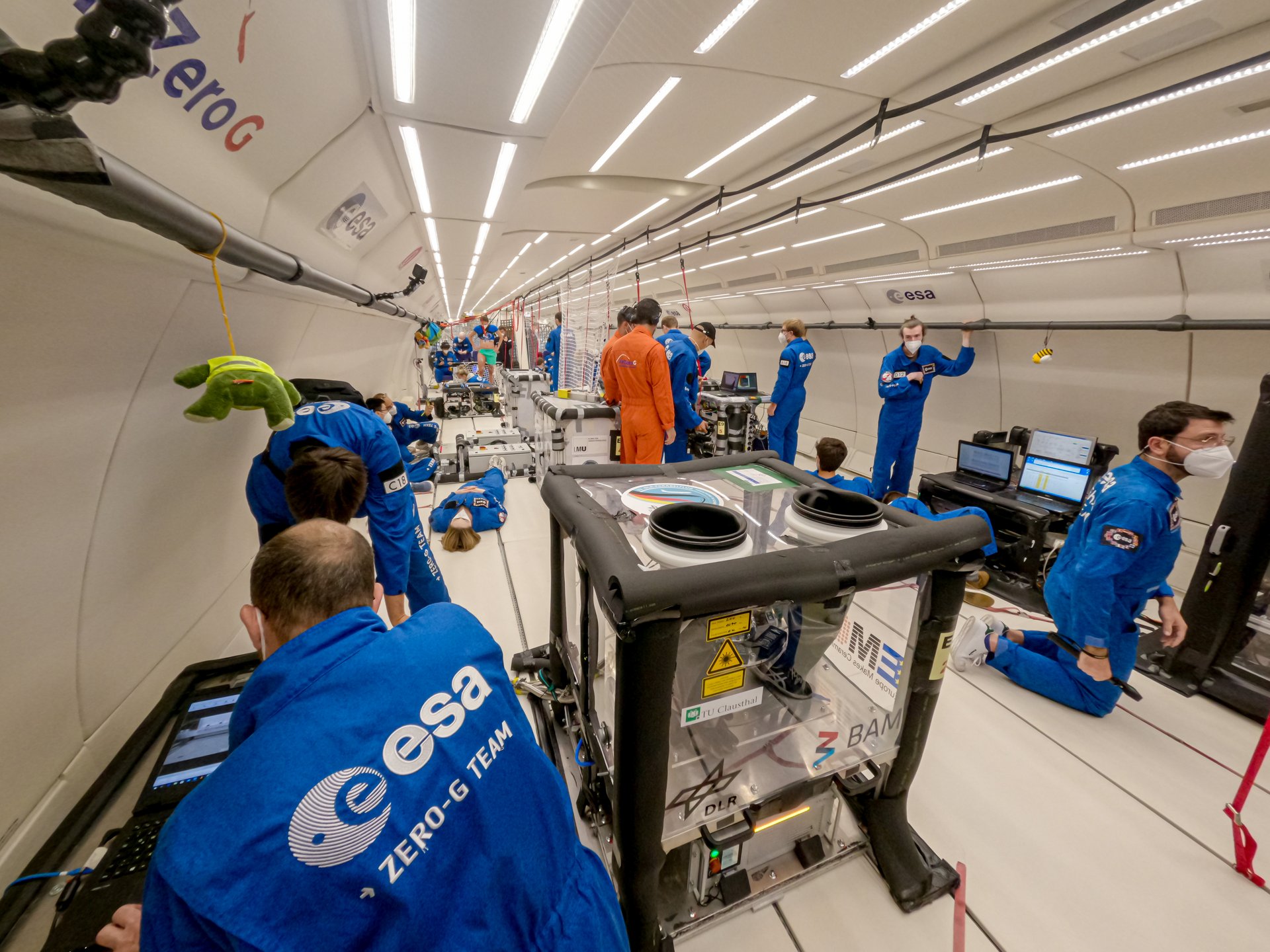 Für Professor Jens Günster war es schon ein bekanntes Szenario: als der Flug im Airbus A310 zwischen 7600 und 8500 Höhenmetern plötzlich für mehr als 20 Sekunden in die Schwerelosigkeit überging. Wie bereits in den Jahren 2017 und 2018 nahm der Materialwissenschaftler, der an der TU Clausthal sowie an der Bundesanstalt für Materialforschung und -prüfung (BAM) tätig ist, auch in 2021 an einer Parabelflug-Kampagne teil. Das Programm – in diesem Jahr von der Europäischen Raumfahrt Agentur ESA vom Flughafen Paderborn-Lippstadt aus durchgeführt – ermöglicht es der Wissenschaft, Experimente unter Bedingungen vorzunehmen, die der Schwerelosigkeit gleichkommen.