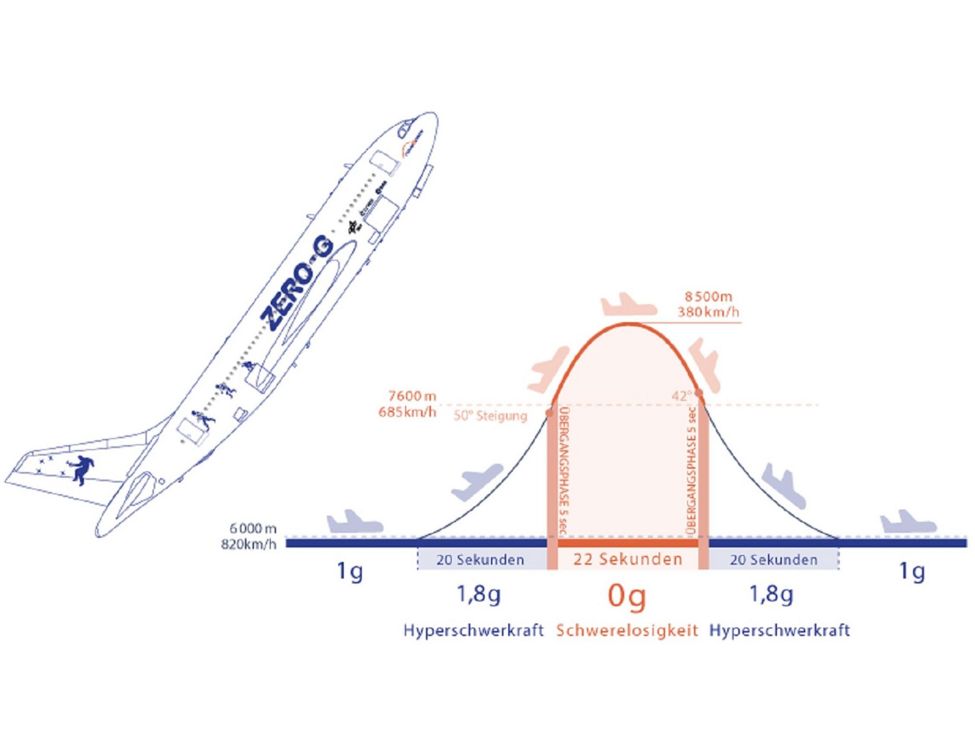 In einem Labor der Universität hatte das Team die Experimente vorbereitet. Später in der Erdatmosphäre wurden Drucker, Software und Druckprozess dann unter den Anziehungskraft-Bedingungen von Mond und Mars getestet. Diese Gravitationen werden durch bestimmte Flugmanöver (siehe Grafik) erreicht. So kann die Marsgravitation für rund 30 Sekunden simuliert werden. Unter Bedingungen wie im Weltall haben die Clausthaler beispielsweise erfolgreich getestet, wie sich ein Schraubenschlüssel per 3D-Druck herstellen lässt. Die Ergebnisse der Experimente können Astronauten bei zukünftigen Weltraumissionen helfen, wenn sie Ersatzteile herstellen müssen.