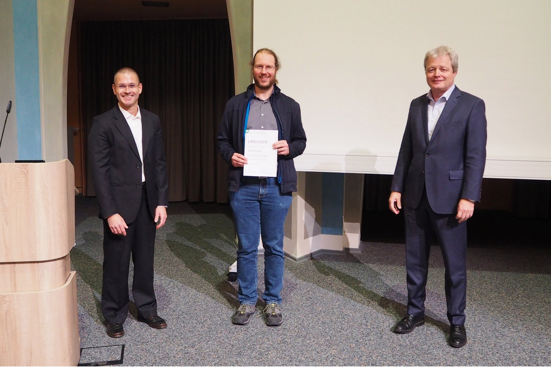 Daneben werden elf weitere Personen oder Gruppen für ihren Einsatz in der virtuellen Lehre ausgezeichnet: Marco Löffelholz, Jana Zimmermann, Angela Binder, das Team des Steiger-Colleges, Mirjam Holm und Stephan Beitler (Projekt am IEI), Steffen Flaischlen, Sebastian Lawrenz und Christoph Knieke, Christoph Klaas und Nils Kreth, Christine Minke, Axel Ehrich sowie die Arbeitsgruppe Atom- und Molekülphysik an Oberflächen (IEPT). Die Urkunden haben Professor Bohn und Ulrich Grethe, der Vorsitzende des Vereins von Freunden der TU Clausthal, Mitte November in der Aula Academica übergeben.