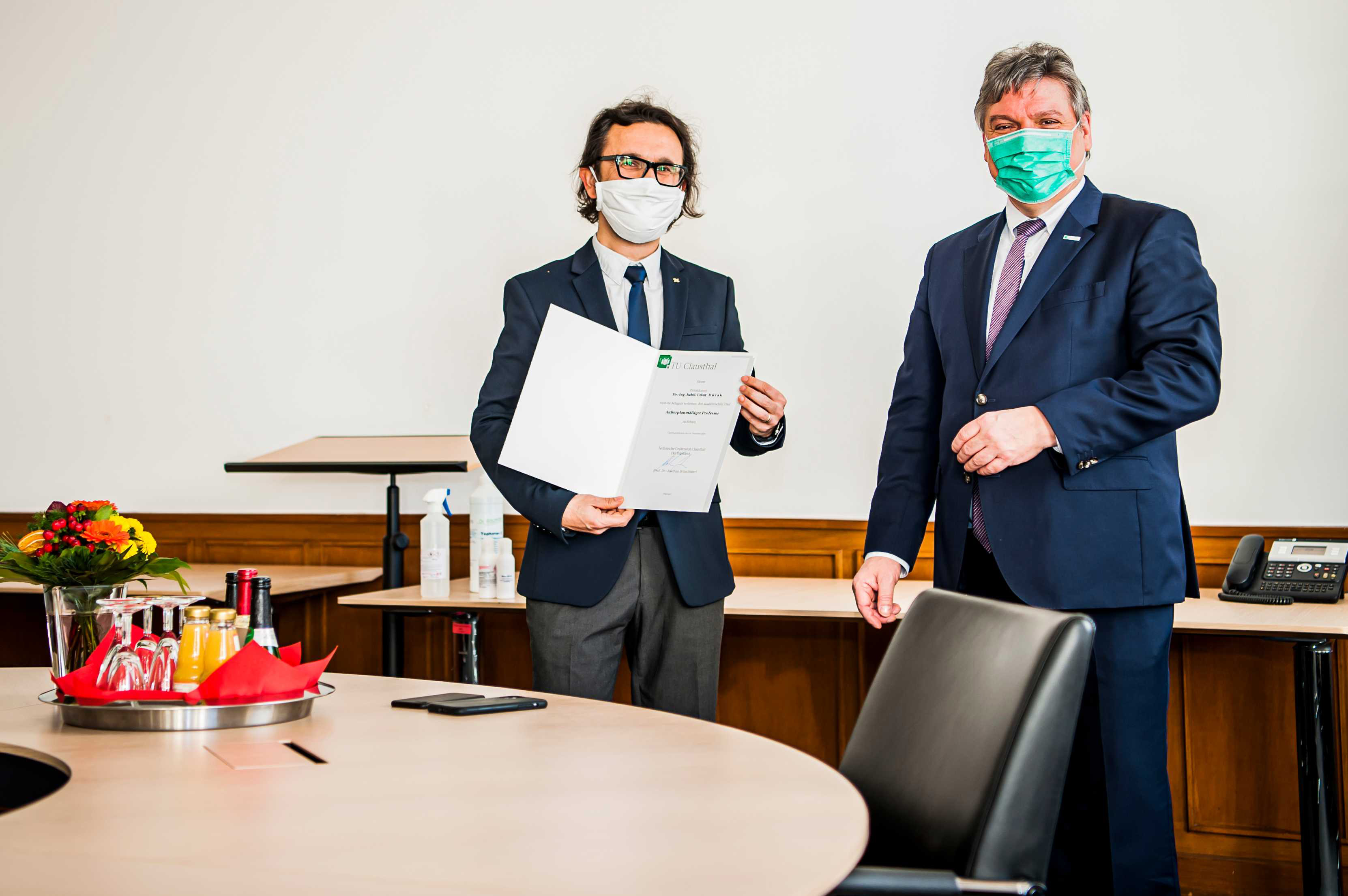 Übergeben wurde die Urkunde von Universitätspräsident Professor Joachim Schachtner, der damit das umfangreiche Engagement Umut Duraks in Forschung und Lehre würdigte. Der Wissenschaftler ist am Deutschen Zentrum für Luft- und Raumfahrt (DLR) beschäftigt und daneben seit 2014 als Lehrbeauftragter und seit 2018 als Privatdozent an der Technischen Universität Clausthal tätig.