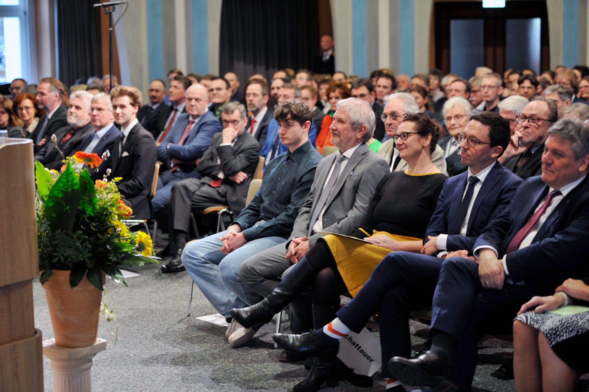 Als äußerlichen Akt legte der Minister der neuen Universitätspräsidenten in der Aula Academica die Amtskette um. Den eingeschlagenen Weg der Veränderung an der TU Clausthal mit der Profilbildung hin zum Leitthema Circular Economy, zur ressourceneffizienten Kreislaufwirtschaft, bezeichnete Mohrs als „absolut richtig und alternativlos. Es ist uns etwas wert, wenn sich unsere Hochschulen weiterentwickeln.“ Für ihren Veränderungsprozess sicherte er der TU Clausthal weiterhin Unterstützung zu: „Sie werden uns als Ministerium und die Landesregierung an ihrer Seite haben.“ Denn das Land brauche die Fachkräfte der TU Clausthal und die Expertise der Harzer Universität.