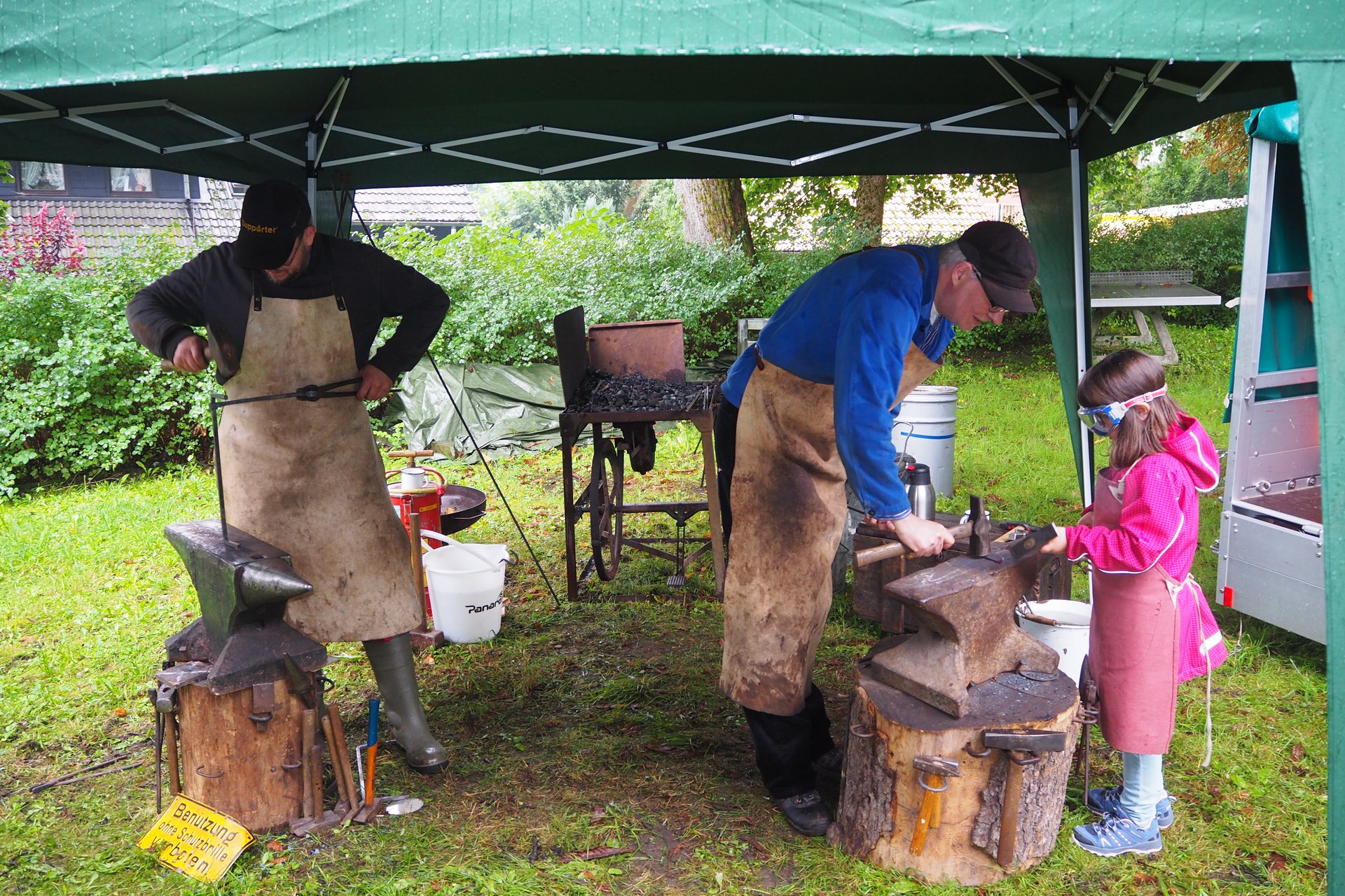 Insgesamt 13 Kinder im Alter von sechs bis zehn Jahren nahmen eine Woche lang an den Angeboten teil. Die achtjährige Abby freute sich zu Beginn der Woche besonders auf das Experimentieren im Super Lab, denn obwohl die Fächer Biologie und Chemie in der Grundschule noch nicht unterrichtet werden, interessiert sie sich sehr dafür. Am ersten Tag konnten die Mädchen und Jungen gemeinsam mit Jan Braun von der Technischen Verwaltung der TU Clausthal und dem Schmied Jan Strippelmann eigene Figuren, wie zum Beispiel ein Hufeisen, schmieden und Gartenkräuter anpflanzen.
