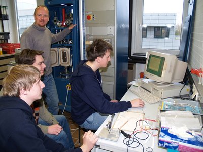 Neben den Nachwuchsforschern steht Privatdozent Dr. Jörg Adams. Es gefällt ihm, dass die drei Schüler motiviert eine Idee verfolgen, verfeinern und auch vertreten. Kennen gelernt haben sich der TU-Wissenschaftler und die Cloppenburger Chemietalente im Frühjahr in Clausthal-Zellerfeld beim Landeswettbewerb „Jugend forscht“. Die Schüler präsentierten ihren Einfall, Adams zählte zur Jury. Da die biologisch abbaubare Tasche damals jedoch noch nicht ausgereift war, reichte es nicht zum Sieg, wohl aber zu einigen Sonderpreisen - beispielsweise dem Forschungspraktikum im Oberharz.