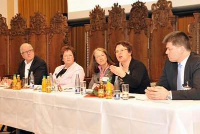 Der Weg zur Geschlechtergerechtigkeit führt über eine Veränderung der Hochschulkultur, betonte Dr. Silke Lesemann (SPD). So dürften beispielsweise Sitzungszeiten nicht ausufern. Ebenfalls müsse über Quoten und finanzielle Sanktionen, falls bestimmte Aspekte der Gleichstellung nicht eingehalten würden, nachgedacht werden. „Denn beim Geld werden alle aufmerksam“, so Lesemann. Zudem strebe die rot-grüne Landesregierung eine Reform der Lehramtsausbildung an, weil eine Sensibilisierung für Geschlechtergerechtigkeit bereits in der Schule ansetzen müsse.