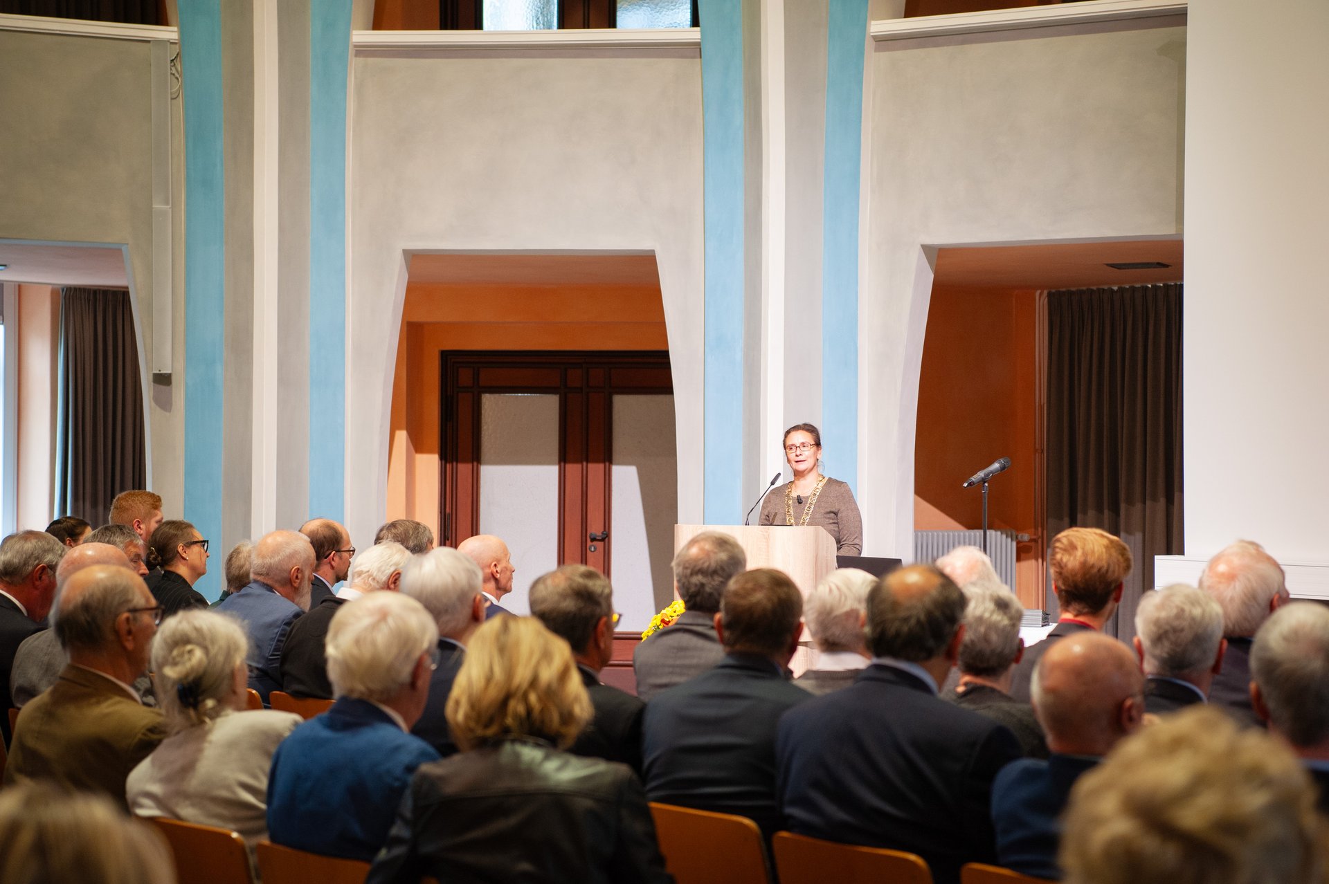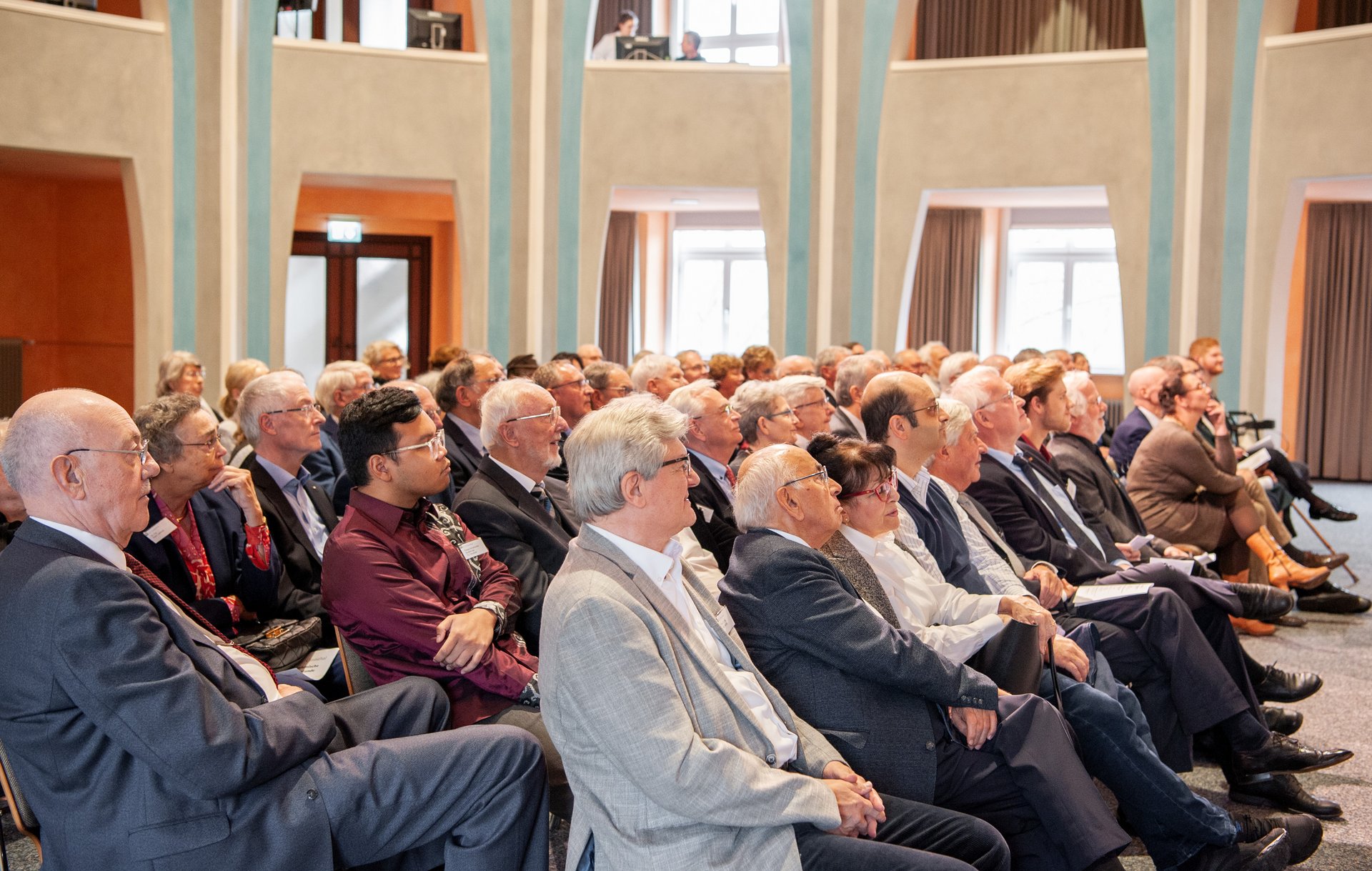 „Ich freue mich, dass Sie heute den Weg an die TU Clausthal gefunden haben und bin gespannt auf viele Anekdoten aus Ihrer Studienzeit“, begrüßte Universitätspräsidentin Dr.-Ing. Sylvia Schattauer die über 50 versammelten Alumni und Gäste in der Aula Academica. „Lassen Sie uns gemeinsam in Erinnerungen schwelgen, aber diskutieren Sie auch mit uns, wie wir die Fragestellungen der Zukunft mit unseren Studierenden beantworten können.“ Die TU-Präsidentin würdigte die vielfältigen Karrierewege der Anwesenden: So sei neben verdienten Ingenieurinnen und Ingenieuren mit Dr. Hubert Ziegler ein ehemaliger Botschafter der Bundesrepublik der Einladung zum Golddiplom gefolgt. Und auch der langjährige Leiter des TU-Rechenzentrums, Dr. Gerald Lange, befinde sich unter ihnen. „Eine Einrichtung zu leiten, die eine derartige lebenslange Verbundenheit erzeugt, erfüllt mich mit Stolz und Bewunderung.“