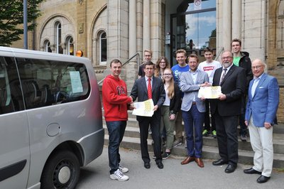 Die eine Hälfte der Summe überreichte Jens Müller von der Sparkasse Goslar als symbolische 1500 Euro. „Uns ist es ein besonderes Anliegen jungen Menschen den Ausbildungsweg hin zum Berufsleben zu ebnen“, erklärte er zum Engagement des Kreditinstituts. Die zweite Hälfte der Summe kommt vom „Verein der Freunde und Förderer der Hochschul- und Forschungseinrichtungen in der Region Goslar“, einem „Tochterverein“ der Unternehmervereinigung „pro Goslar“. „Ziel ist es, potenzielle Studierende aus der Region über ein Studium in Clausthal als Fach- und Führungsnachwuchskräfte für die Wirtschaftsregion Goslar zu gewinnen“, erläuterte der Vorsitzende Peter Weihe, zugleich Ehrenvorsitzender von „pro Goslar“. Zusammen mit Philipp Krause, Verleger der Goslarschen Zeitung und Vorstandsmitglied des Vereins, übergab er die zweiten 1500 Euro.