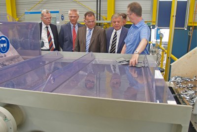 Ebenso interessierten sich die Industriemanager für das Arbeitsspektrum im Clausthaler Zentrum für Materialtechnik, darunter die Forschung der TU und der Clausthaler Umwelttechnik-Institut GmbH auf dem Gebiet der Rohstoffeffizienz von Metallen. Viel Aufmerksamkeit zog eine Anlage zur Entzinkung von Stahlschrott auf sich, ein Projekt, das vom Bundesforschungsministerium gefördert wird.