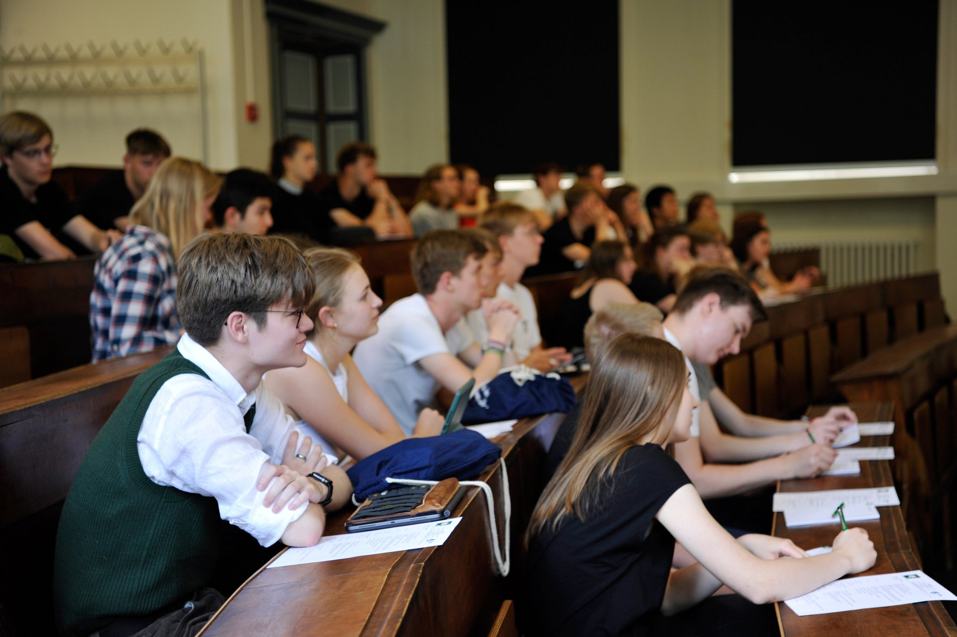 „Es ist uns eine Freude, Sie nach drei Jahren Corona-Pause wieder an der TU Clausthal zu dieser Talentförderung willkommen heißen zu dürfen. Seit zwei Jahrzehnen ist das Vorbereitungsseminar zur Chemie-Olympiade eine Erfolgsgeschichte an unserer Universität.“ Mit diesen Worten begrüßte Prof. Christian Bohn, Vizepräsident für Studium und Lehre, die 35 Schülerinnen und Schüler zwischen 15 und 18 Jahren im historischen Hörsaal des Instituts für Anorganische und Analytische Chemie (IAAC).