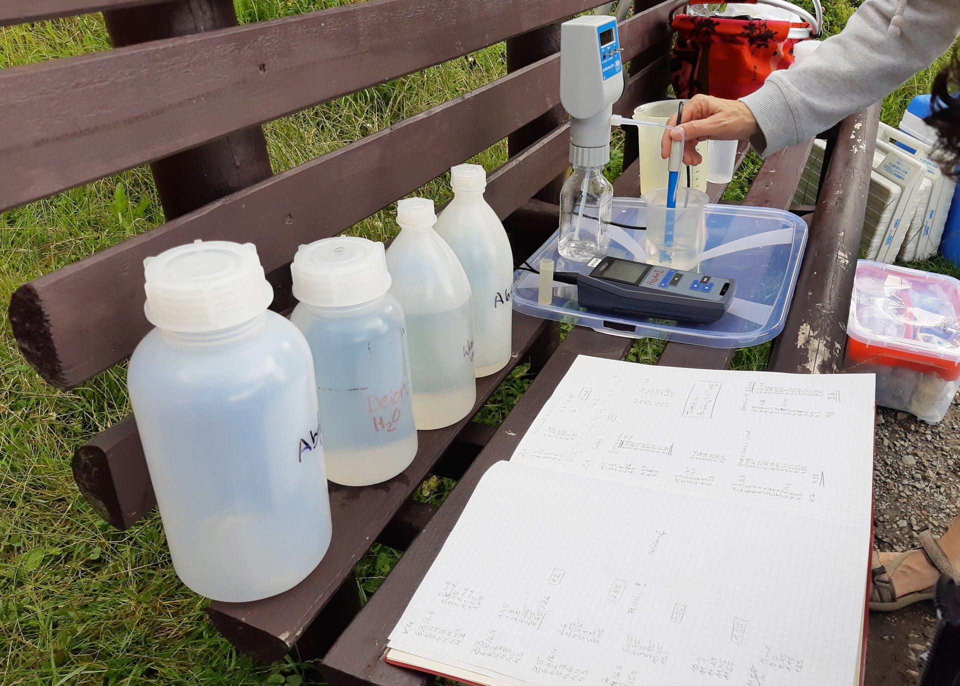 Die im Kiefhölzer Teich ausgeprägte Sommerschichtung der Wassersäule führt zu einem auch in der Ozeanforschung gut untersuchten Prozess, der als „iron cycling“ bezeichnet wird. „Bei diesem Prozess entsteht durch wechselnde Redox-Verhältnisse an der Grenze zweier Seeschichten bioverfügbares zweiwertiges Eisen“, erläutert Dr. habil Elke Bozau, die die Exkursionen federführend organisiert hat. „Durch die in größerer Wassertiefe gelegenen Abläufe der Teiche tritt dieses zweiwertige Eisen wieder in Kontakt mit atmosphärischem Sauerstoff und fällt als orangefarbenes Eisenhydroxid aus. Neben dem Eisen sind weitere Elemente, Nährstoffe und organische Spurenstoffe im System durch den Redoxwechsel spezifischen Änderungen ausgesetzt. Insofern könnte man den Kiefhölzer Teich durchaus als ein den Ozeanen analoges System betrachten und spart bei der Untersuchung nicht nur Reise-, sondern vor allem auch Probenahme- und Analysekosten.“