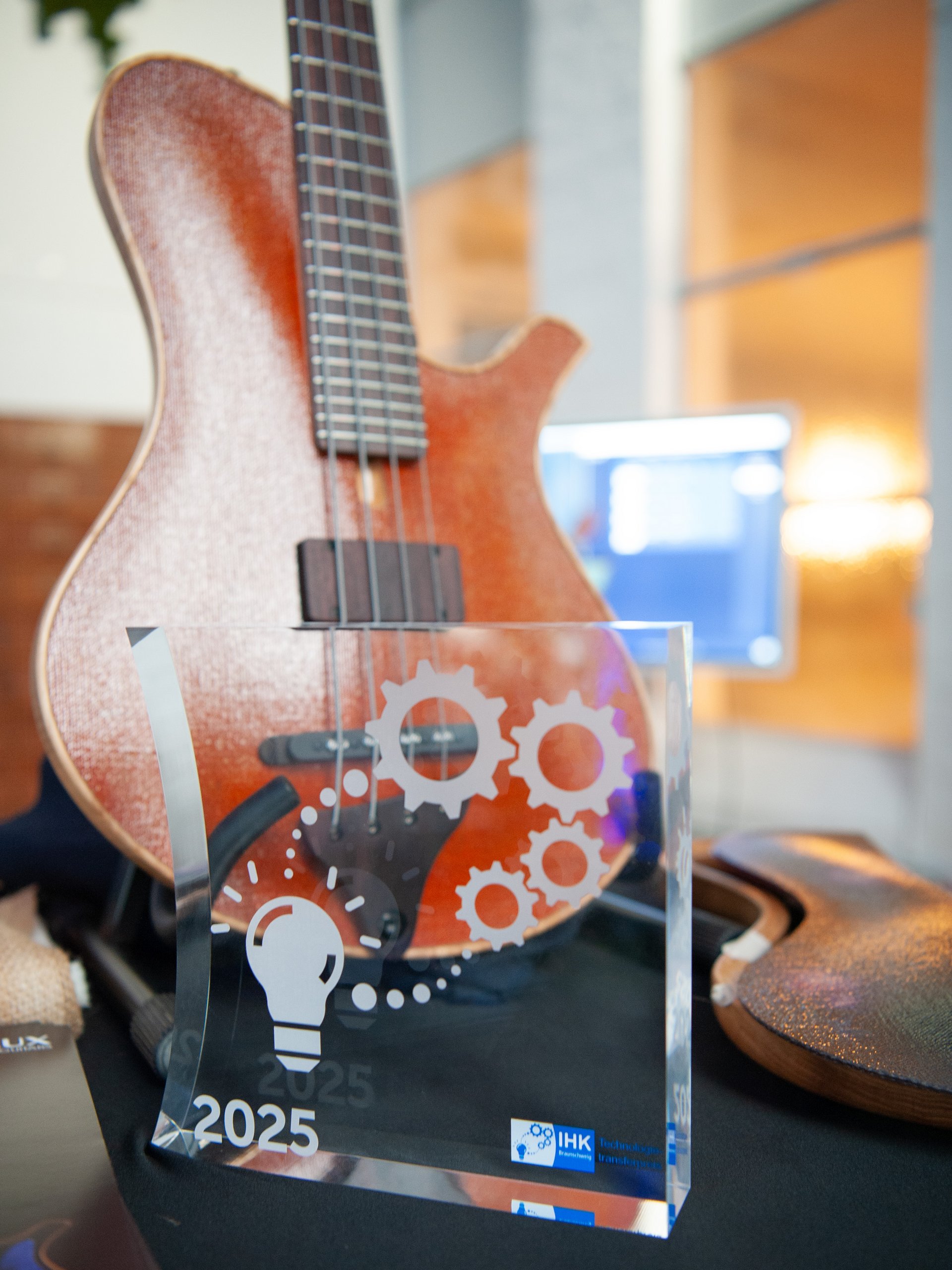 Großer Erfolg: Ein innovativer E-Bass mit Faserverbundwerkstoffen sichert der TU Clausthal und der Bassmanufaktur Marleaux BassGuitars die Auszeichnung. Die Entscheidung traf das Publikum.