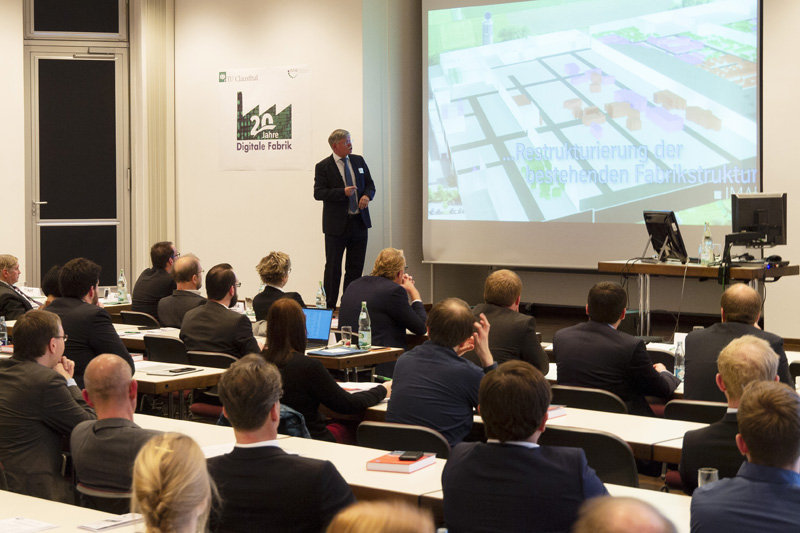 Die Gäste der Tagung waren aus der Region, aber auch aus ganz Deutschland und sogar aus Fernost angereist. Bevor sie sich den Fachvorträgen zuwendeten, sprach Jean Haeffs, Geschäftsführer des Vereins Deutscher Ingenieure (VDI) aus Düsseldorf, ein Grußwort. Er würdigte damit auch die Verdienste von Professor Bracht, der mit Abschluss des Wintersemesters die Altersgrenze erreichen wird. Der Clausthaler Wissenschaftler war jahrelang Mitglied im Fachbeirat „Fabrikplanung und -betrieb“ in der Gesellschaft für Produktion und Logistik des VDI. Zudem stand er seit der Gründung im Jahr 2002 dem VDI-Fachausschuss 205 „Digitale Fabrik“ vor.