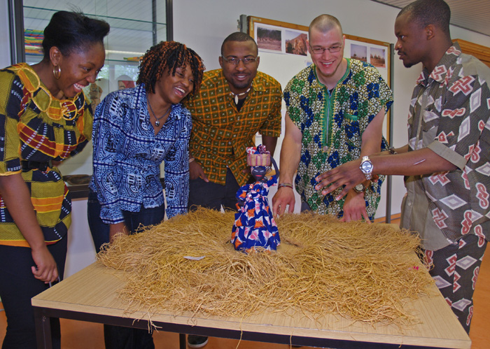 Kaffee gehört neben Kakao, Baumwolle und Bananen zu den Hauptanbauprodukten des 19-Millionen-Einwohner-Landes. Folglich hatte Loth Teto Tchuenkam als Vorsitzender der CSK-Studierenden die Gäste bei der Eröffnung der Kulturwoche zu vollmundigem Kaffee und Gebäck eingeladen. In Vitrinen, an Schautafeln und auf Tischen präsentierten die Kameruner in der Universitätsbibliothek farbenfrohe Kleidung, Schmuck, Bilder und Besonderheiten aus ihrer Heimat. Wer sich für die Speisen des Landes interessierte, wurde in der Mensa bestens bedient. „Es ist alles alle geworden, die meisten fanden es sehr lecker“, sagte Tatiana Djaba, die Generalsekretärin der CSK.