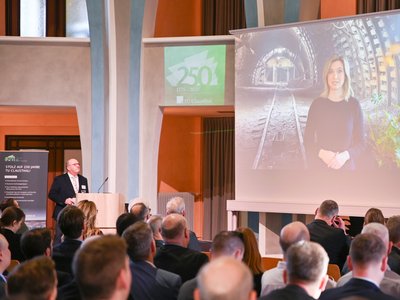 Der Ansatz der Nachhaltigkeit spiegelt sich nicht nur im Bergbau und im Green Deal der EU wider, sondern auch im Leitthema der TU Clausthal, in der Circular Economy, der ressourceneffizienten Kreislaufwirtschaft. Darauf fokussiert sich die TU Clausthal in Forschung, Lehre und Transfer und hat dabei auch innovative Materialien, erneuerbare Energien und die digitale Transformation im Blick, berichtete Universitätspräsidentin Dr.-Ing. Sylvia Schattauer. Sie nutzte zudem die große Bühne – die Tagung hatte auch internationale Gäste – um zur Jubiläumsfestwoche der TU Clausthal (14. – 22. Juni) einzuladen.
