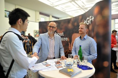 „Gut und fleißig zu sein, reicht in der heutigen Zeit für den beruflichen Erfolg nicht aus“, sagte Dr. Georg Frischmann bei der Begrüßung, „man braucht gute Partner.“ Bedeutendes, so der hauptberufliche Vizepräsident der Hochschule, entstehe immer dann, wenn mehrere zusammenkommen und ihre Fähigkeiten aktiv vereinen. Auf der Firmenkontaktmesse gehe es darum, Brücken zur Wirtschaft aufzubauen, die im besten Fall in eine längerfristige Zusammenarbeit münden.