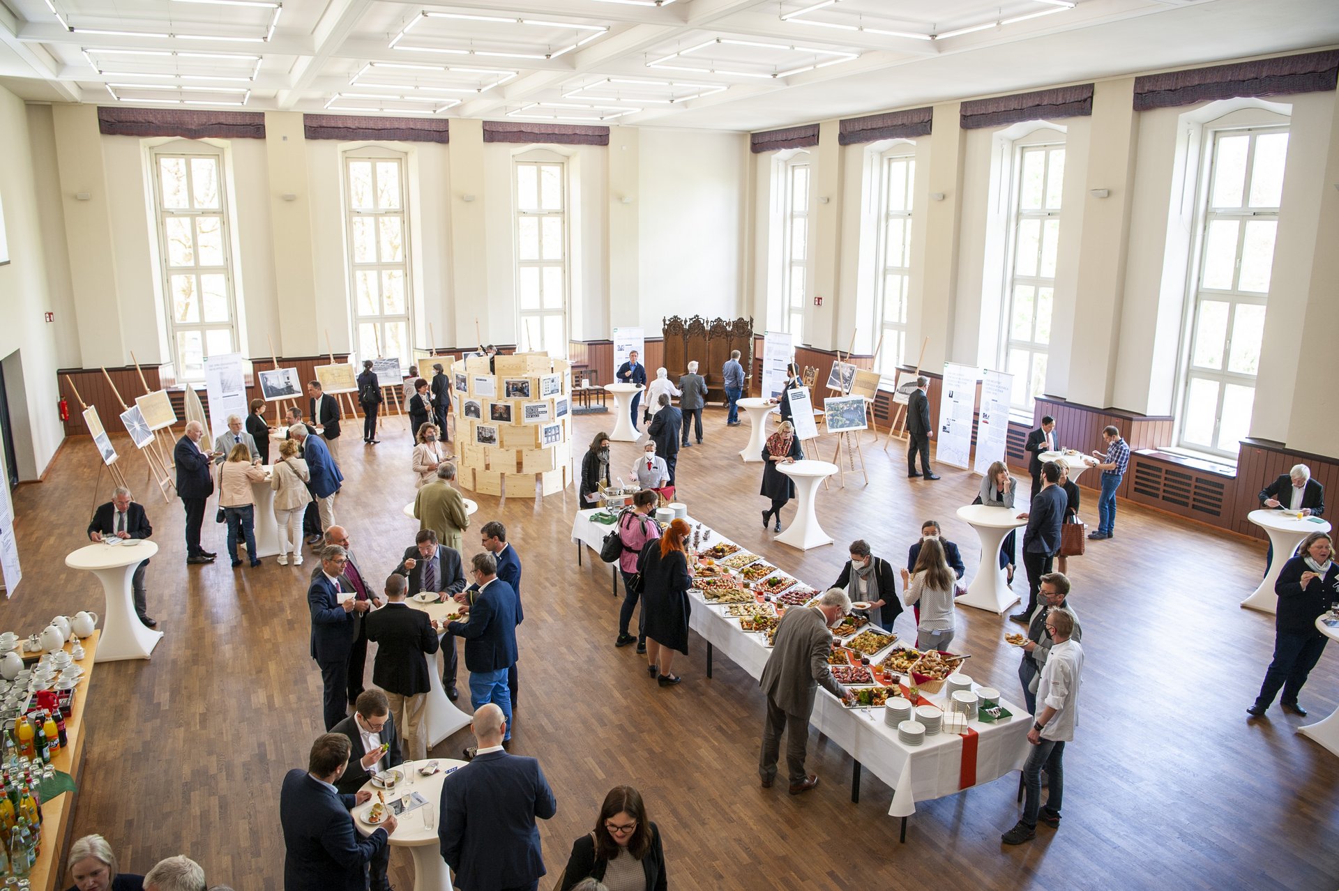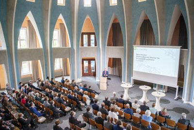 Niedersachsens Wissenschaftsminister Thümler und 150 Gäste erfreuen sich an der Aula Academica der TU Clausthal: Das Architekturdenkmal ist für 2,8 Millionen Euro prächtig restauriert worden.