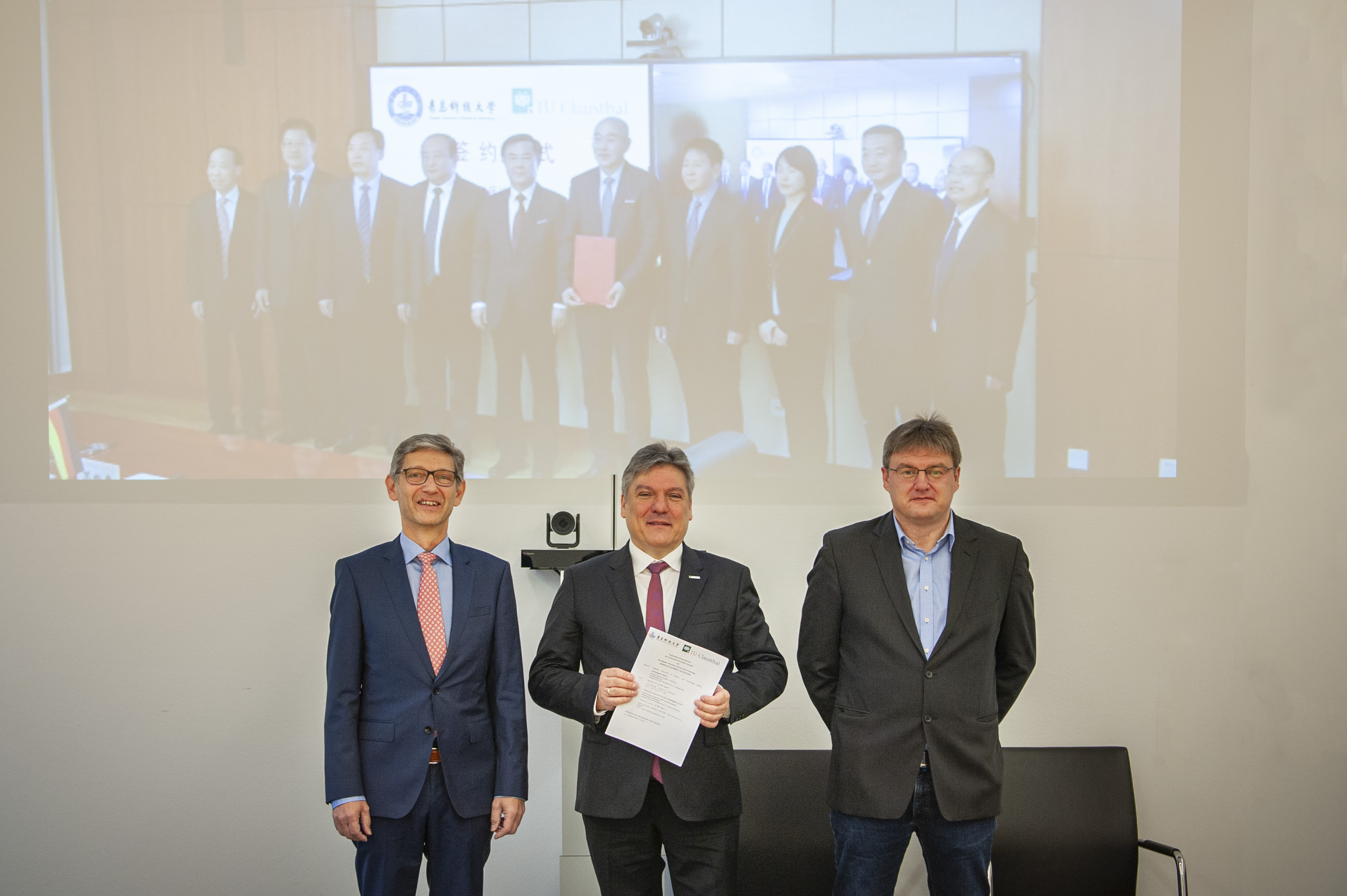 Bereits im Mai 2019 hatten die TU Clausthal und die QUST ein „Memorandum of Understanding“ zur gemeinsamen Betreuung von Promovierenden unterschrieben. Professor Alfons Esderts als Clausthaler Vizepräsident für Forschung, Transfer und Internationales sowie Professor Ziegmann wohnten dieser Zeremonie in der Hafenstadt Qingdao bei. Die ersten Doktoranden sind bereits in Clausthal aktiv. Diese gelebte Kooperation mündete nun in einen Vertrag zum Aufbau eines gemeinsamen Deutsch-Chinesischen Institutes an der QUST. Am 27. Oktober unterzeichneten beide Seiten den Kontrakt zu dieser Kooperation in einer Videokonferenz.